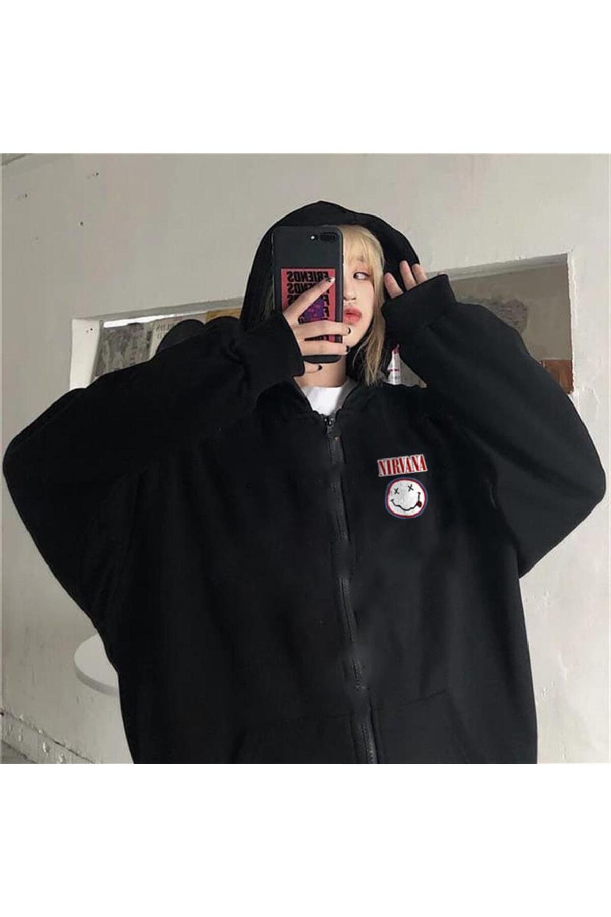Oversize Paper Nirvana Kurt Cobain T Sırt Baskılı Fermuarlı Kapşonlu Siyah Hırka (2 İplik) Oversize Paper Nirvana Kurt Cobain T Sırt Baskılı Fermuarlı Kapşonlu Siyah Hırka (2 İplik) zWx2ipHirka969 L/XL