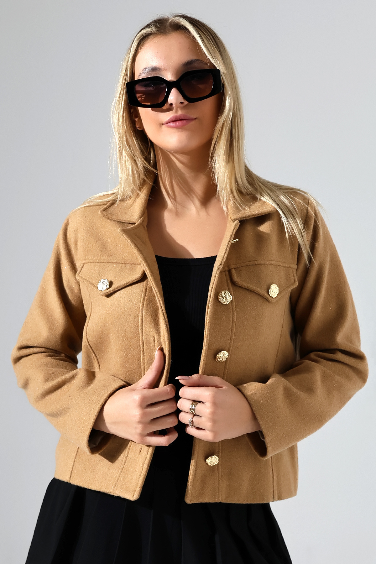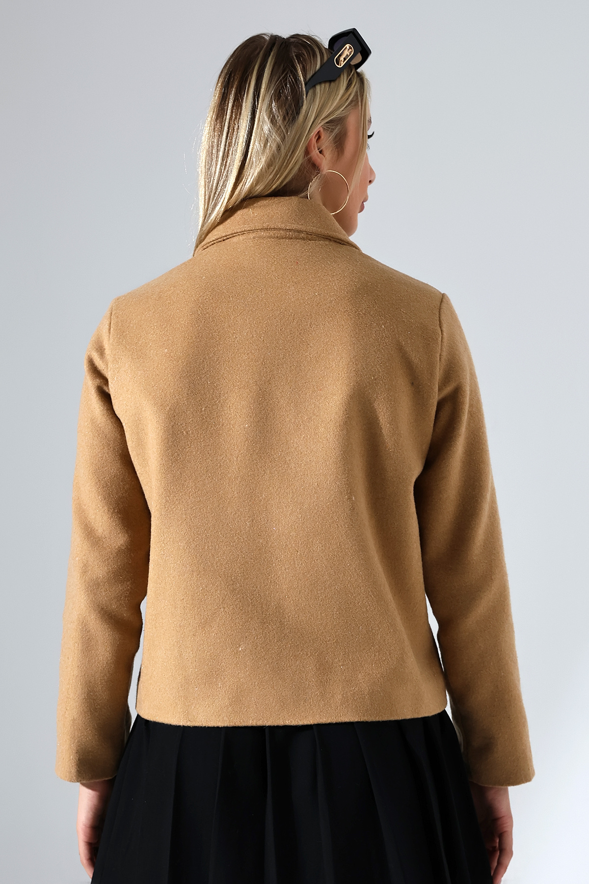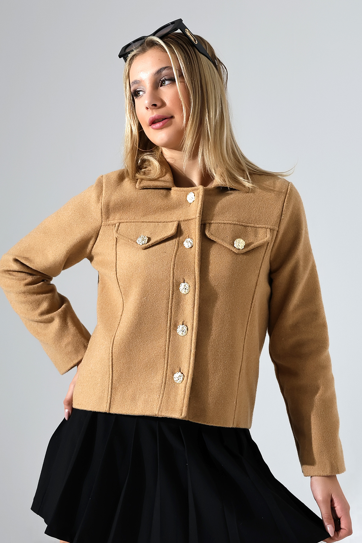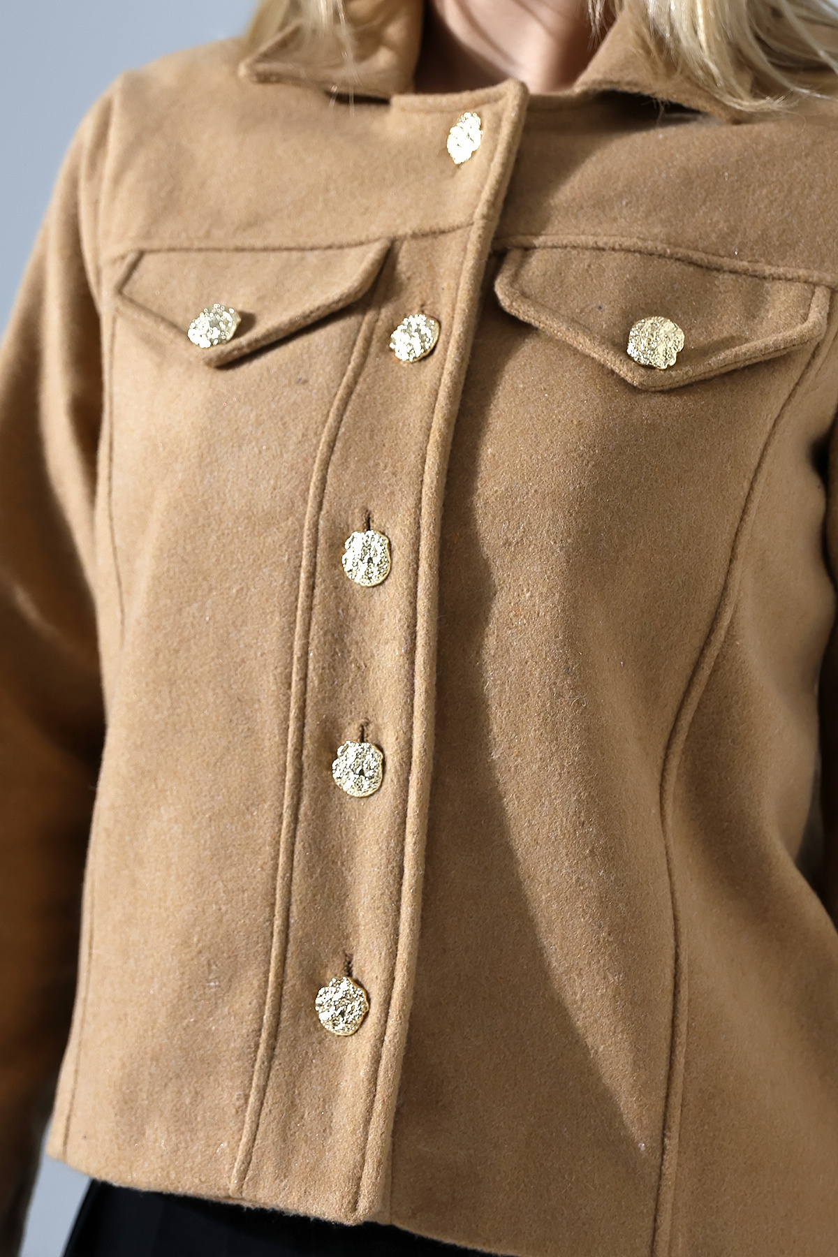 Düğmeli Hardal Kadın Kısa Kaşe Ceket Düğmeli Hardal Kadın Kısa Kaşe Ceket UJ1025 XL