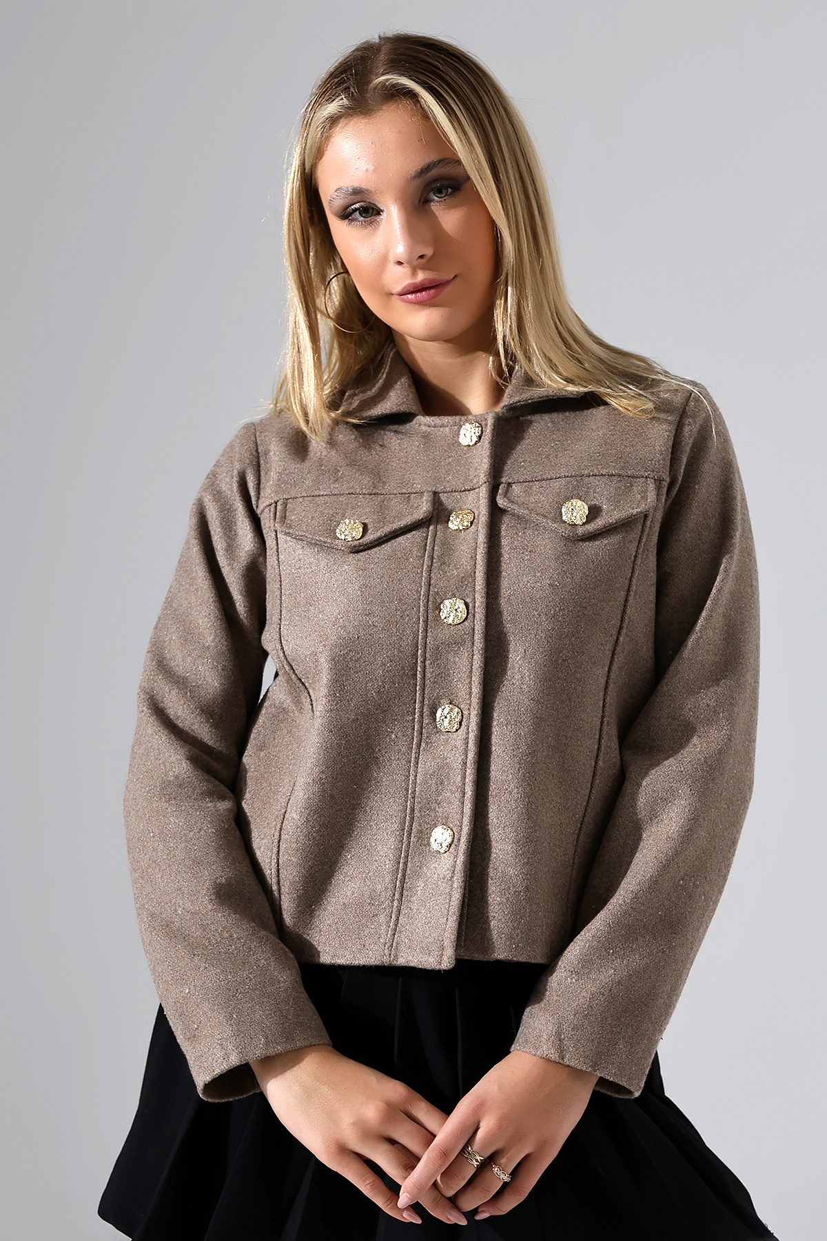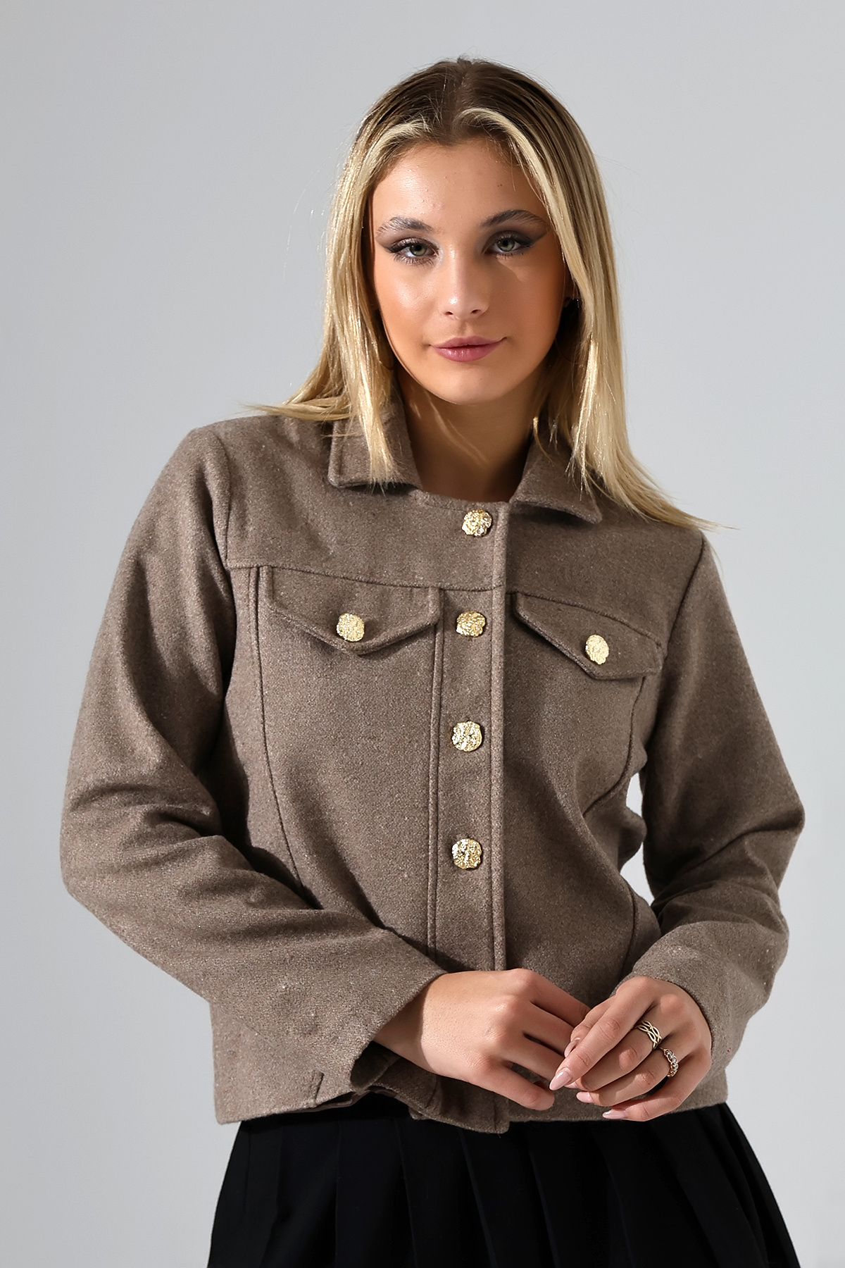 Düğmeli Vizon Kadın Kısa Kaşe Ceket Düğmeli Vizon Kadın Kısa Kaşe Ceket UJ1025 XL