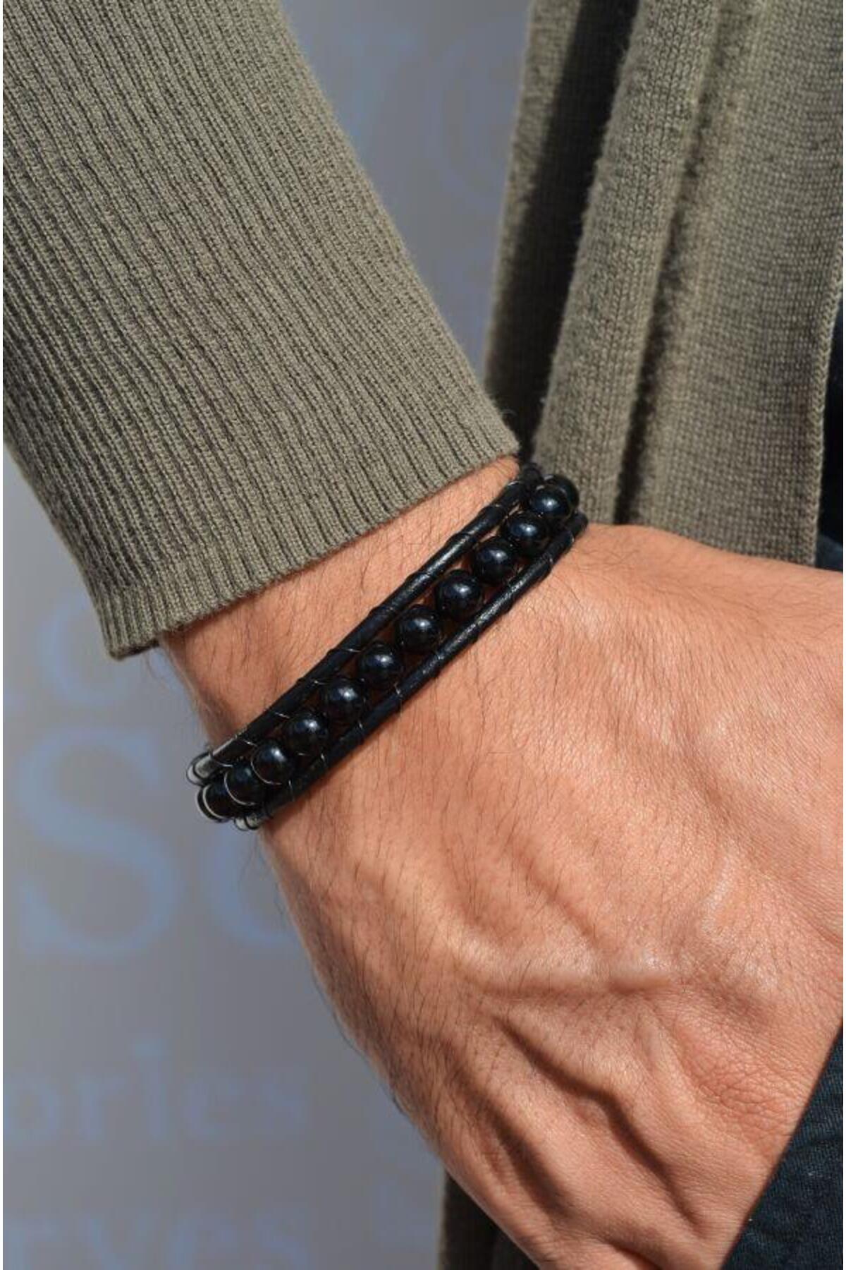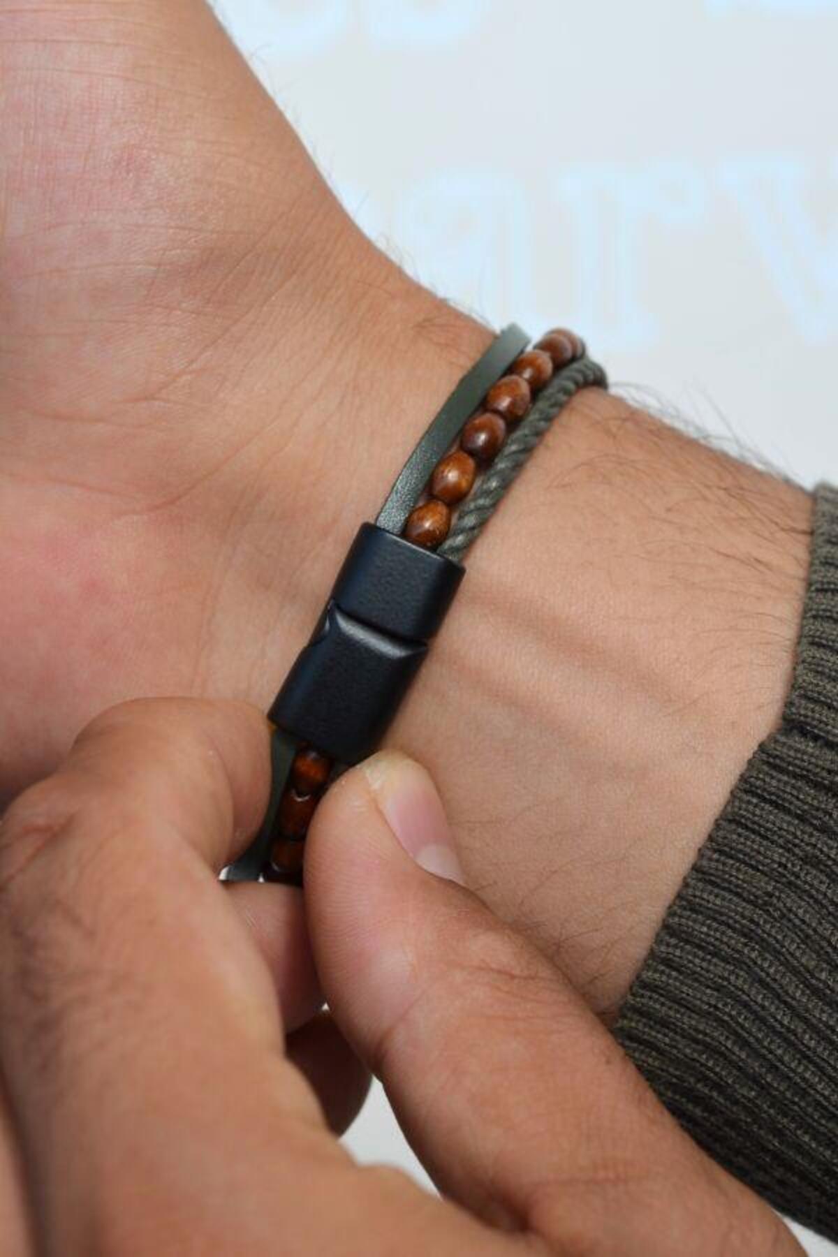 Doğaltaş Deri Çoklu Sıralı Erkek Deri Bileklik Yeşil Kahverengi Doğaltaş Deri Çoklu Sıralı Erkek Deri Bileklik Yeşil Kahverengi DC16112427 تک سایز