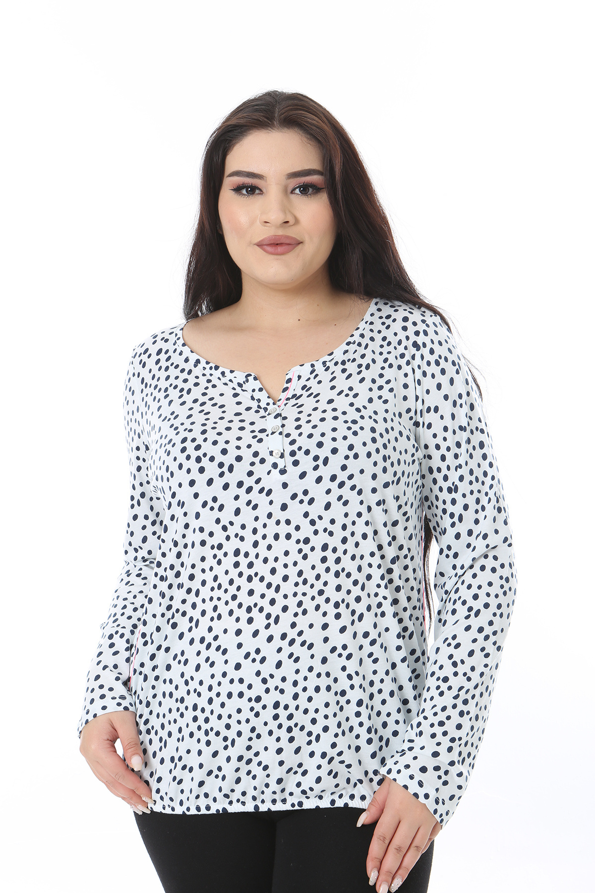 Kadın Büyük Beden Kemik Ön Patı Süs Düğmeli Uzun Kollu Bluz 65N38642 Kadın Büyük Beden Kemik Ön Patı Süs Düğmeli Uzun Kollu Bluz 65N38642 50