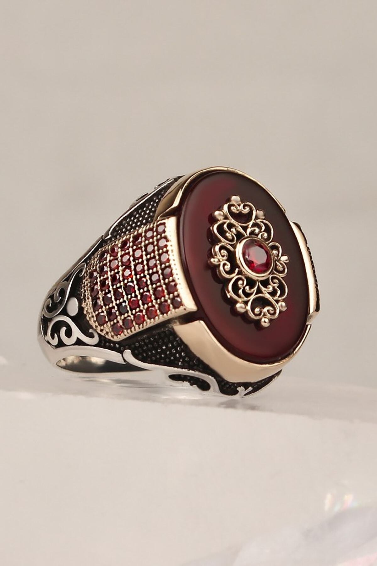 Kare Model Kalem Işlemeli Kırmızı Zirkon Taşlı Yüzük Kare Model Kalem Işlemeli Kırmızı Zirkon Taşlı Yüzük EYO2506 30