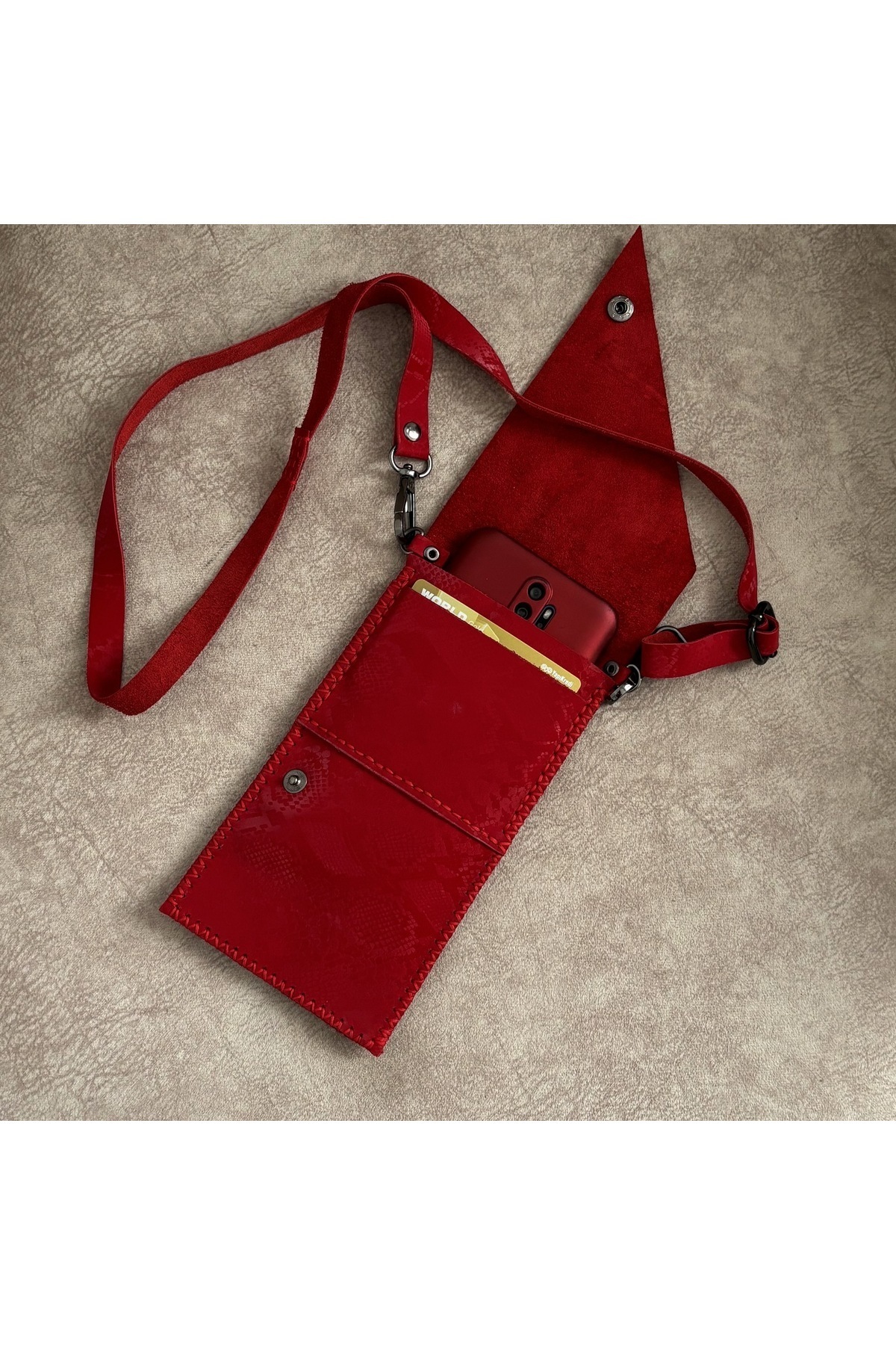 Kırmızı Hakiki Deri Telefon Çantası Çapraz Çanta El Yapımı Kırmızı Hakiki Deri Telefon Çantası Çapraz Çanta El Yapımı cantatlf تک سایز