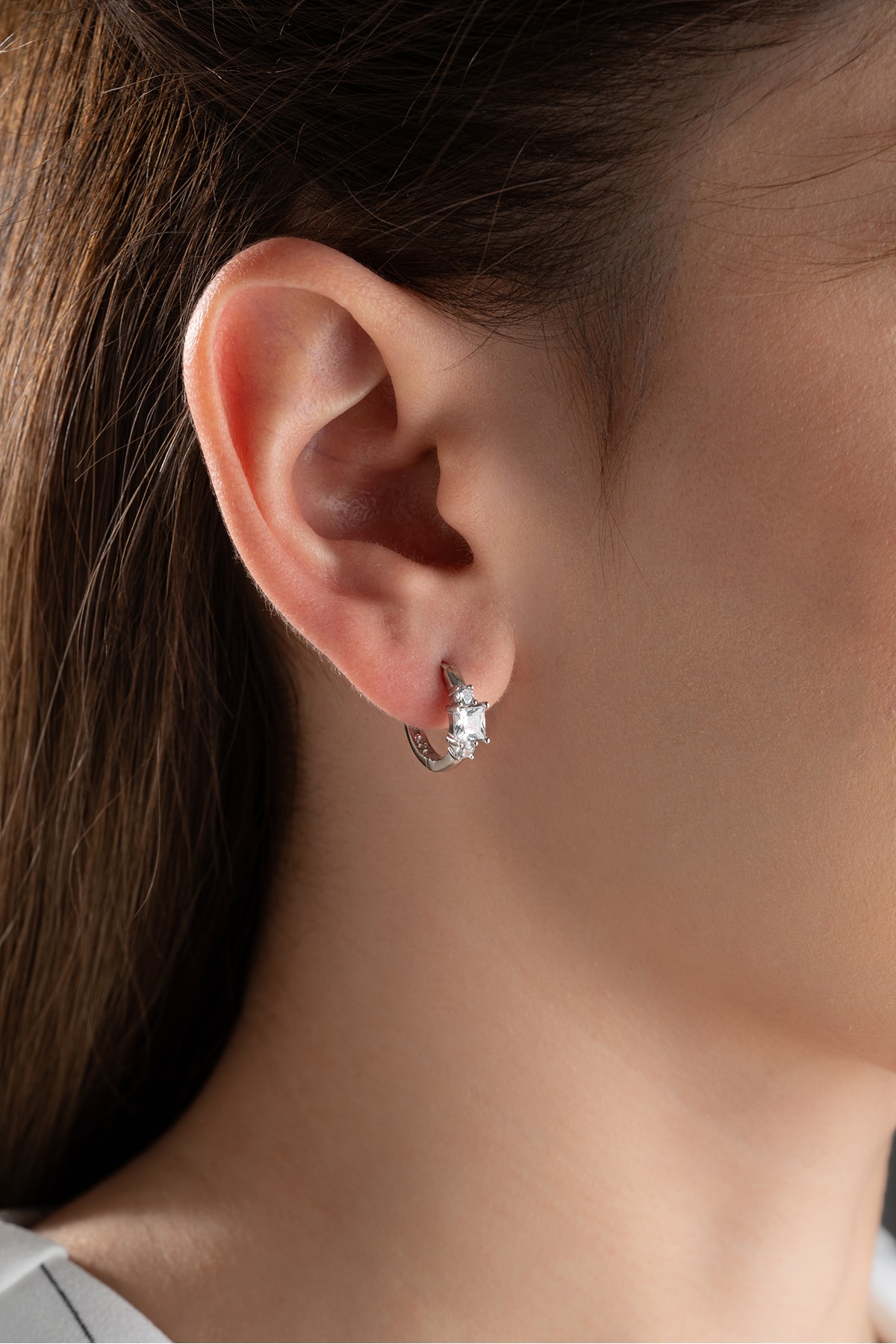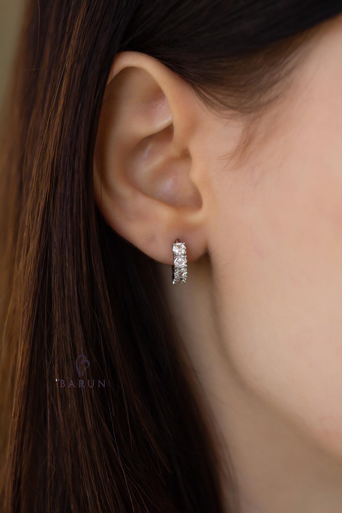 925 Ayar Gümüş Baget Taşlı Halka Küpe 925 Ayar Gümüş Baget Taşlı Halka Küpe MDLL00325 تک سایز