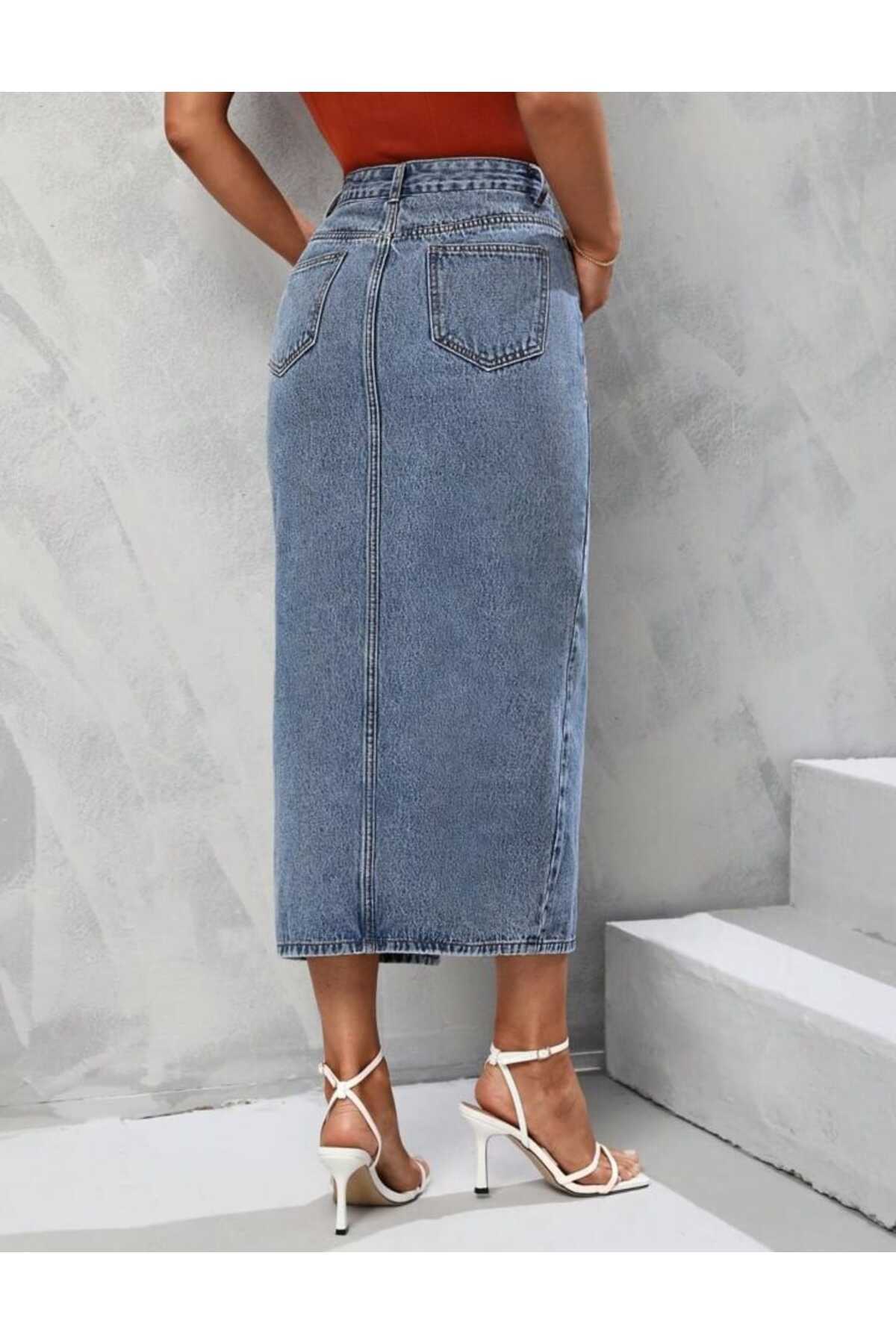 2100-etek Kadın Likralı Önden Yırtmaçlı Jeans Kot Denim Uzun Etek 2100-etek Kadın Likralı Önden Yırtmaçlı Jeans Kot Denim Uzun Etek PASS&PASS 2100 42