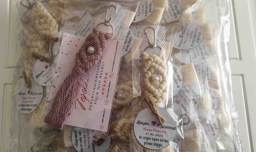 10'lu Etiketli Ve Inci Süslemeli Makrome Anahtarlık, Düğün Kına Nişan Söz Doğum Sünnet Hediyeliği 10'lu Etiketli Ve Inci Süslemeli Makrome Anahtarlık, Düğün Kına Nişan Söz Doğum Sünnet Hediyeliği NMD-MKRM-4453 تک سایز