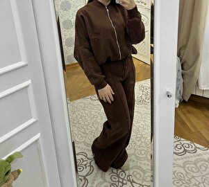Kahverengi Önü Dikiş Detaylı Pantolon Sweat Takım Kahverengi Önü Dikiş Detaylı Pantolon Sweat Takım Htkm995 M