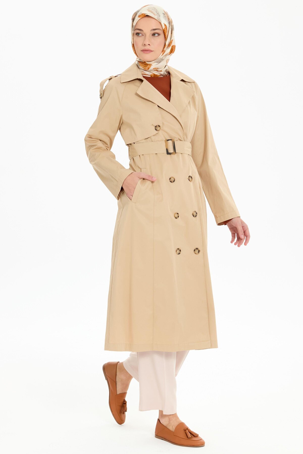 Kemerli Apoletli Trençkot - Bej Kemerli Apoletli Trençkot - Bej 241TC9021TB.01-02 42