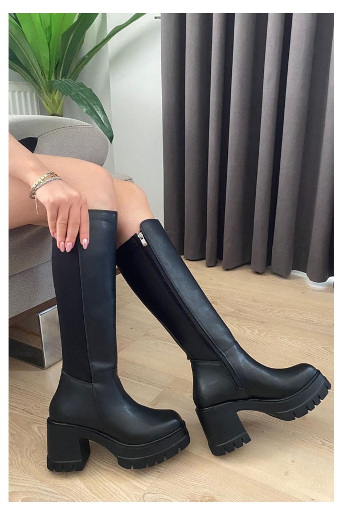 Kadın Arkası Dalgıç Kumaş 8 cm Platformlu Topuklu Çizme Kadın Arkası Dalgıç Kumaş 8 cm Platformlu Topuklu Çizme AMİ85-AOS 40