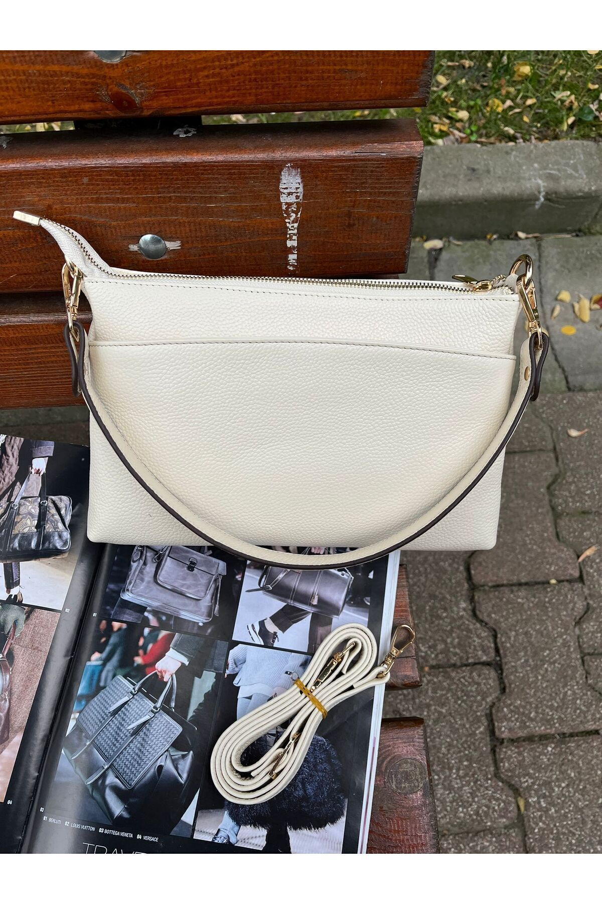 Hakiki Deri Hem Omuz Hem Bel Kadın Çantası Valia Model Bej Renk Hakiki Deri Hem Omuz Hem Bel Kadın Çantası Valia Model Bej Renk valia001 Standart