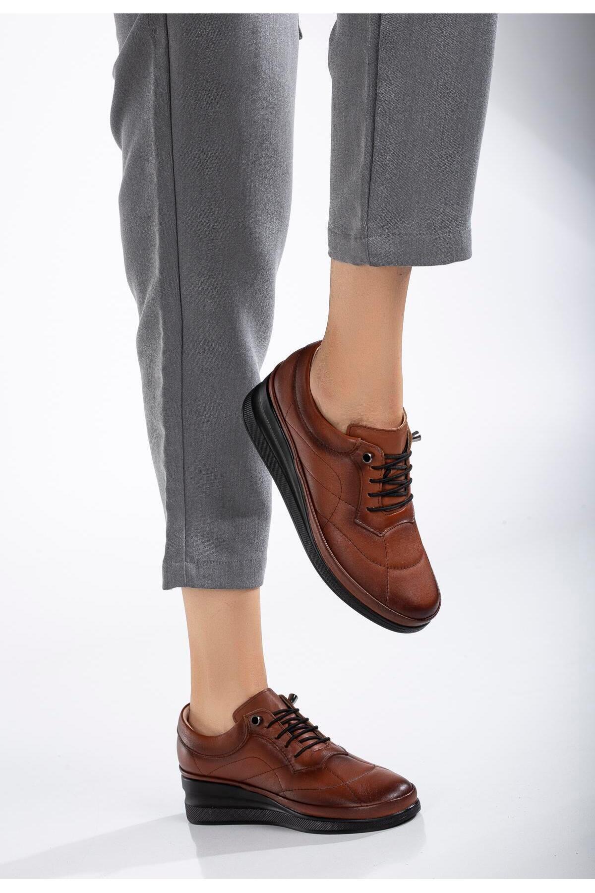 Hakiki Deri Ortopedik Kadın Dolgu Topuklu Ayakkabı Taba Elastik Bağcıklı Hakiki Deri Ortopedik Kadın Dolgu Topuklu Ayakkabı Taba Elastik Bağcıklı 162-17-DERI 41