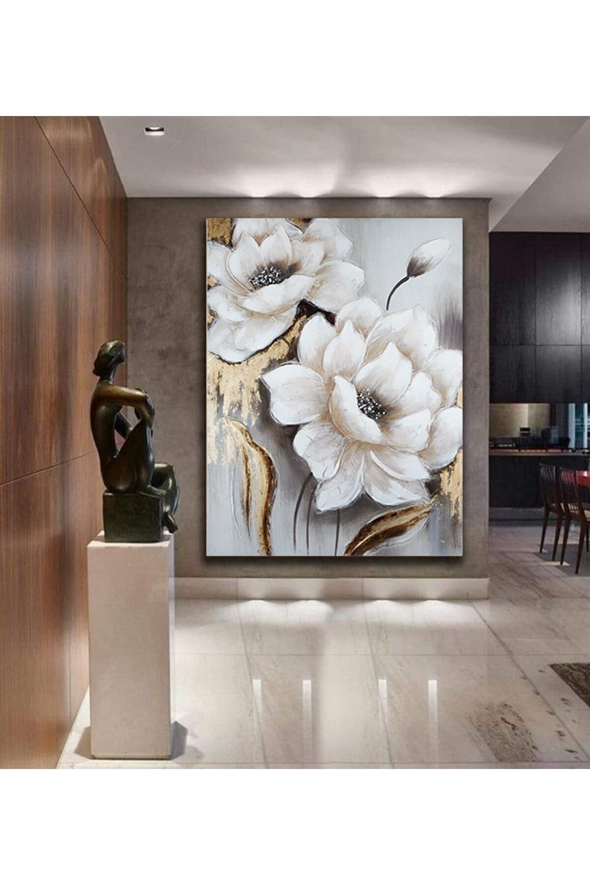 Tekli Panoramik Dikey Kanvas Soyut Düşünen Çiçekli Kadın Tablosu Tekli Panoramik Dikey Kanvas Soyut Düşünen Çiçekli Kadın Tablosu ABARTART-TPDK-0004 70 x 140