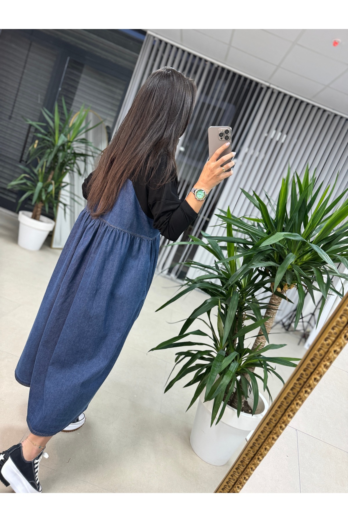 Tasarım Siyah Denim Elbise Tasarım Siyah Denim Elbise dr8111 L