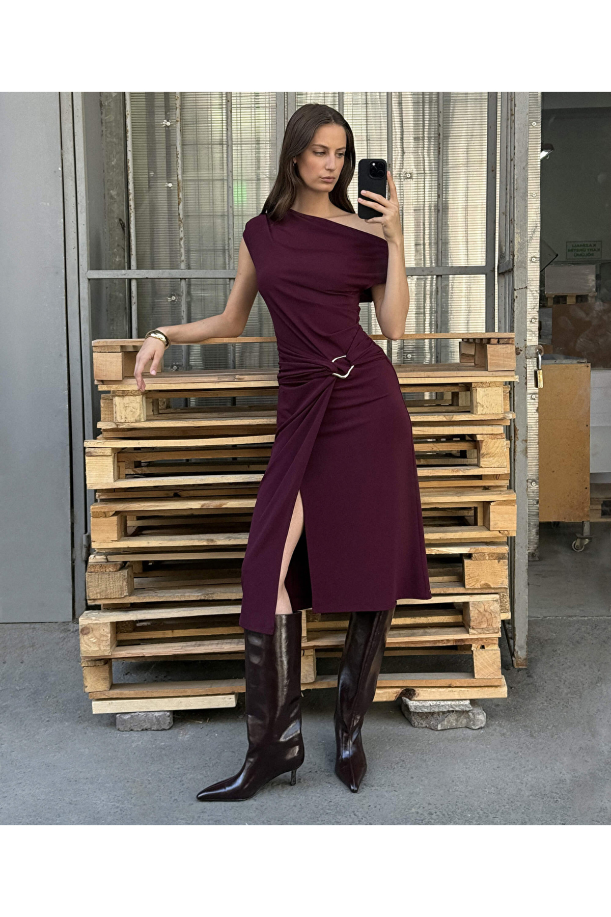 Asimetrik kol triko elbise Asimetrik kol triko elbise IW6240002243001 44