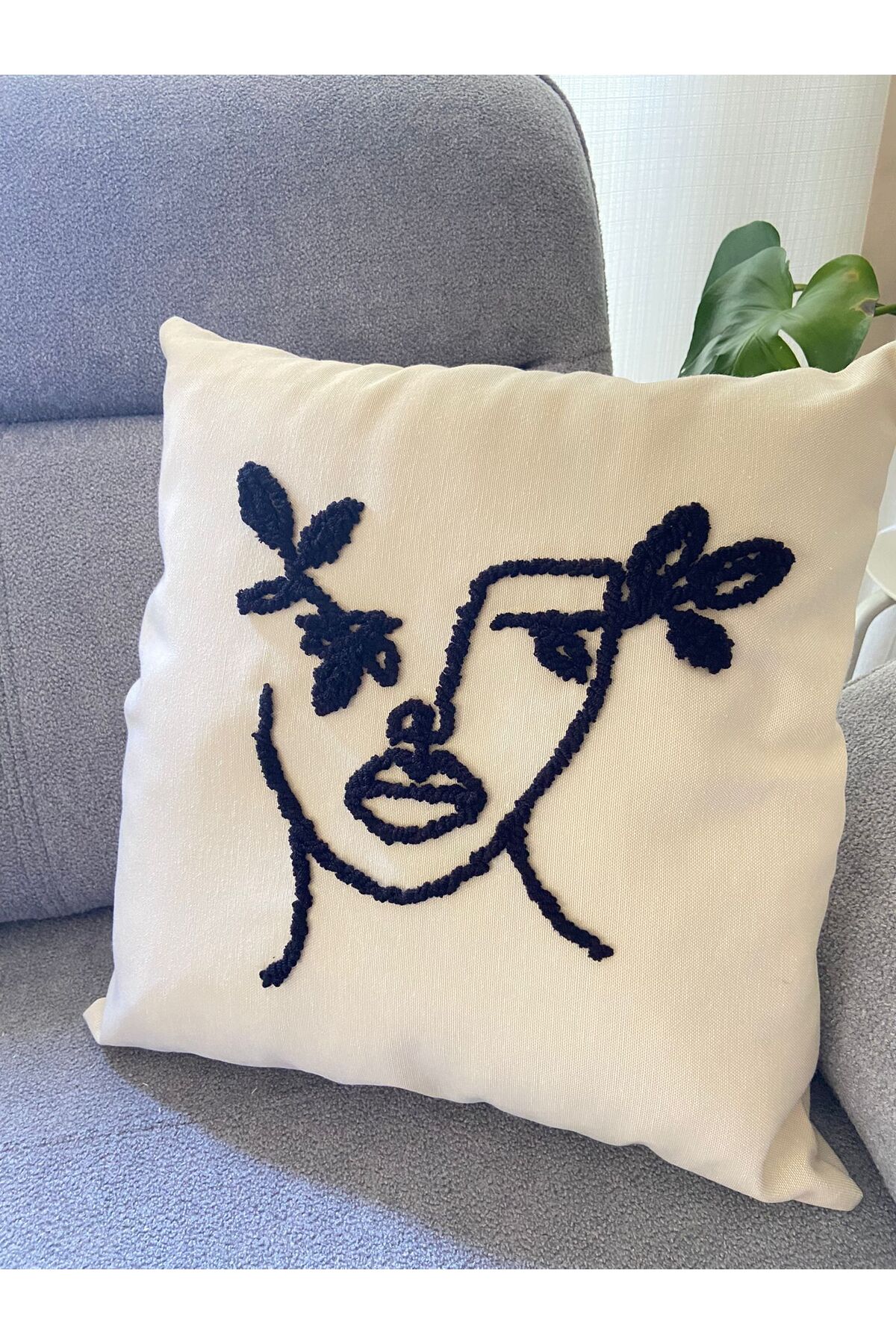 Yüz Figürlü Yıkanmış Keten One Line Art Punch Kırlent Yastık Kılıfı Yüz Figürlü Yıkanmış Keten One Line Art Punch Kırlent Yastık Kılıfı onelineart