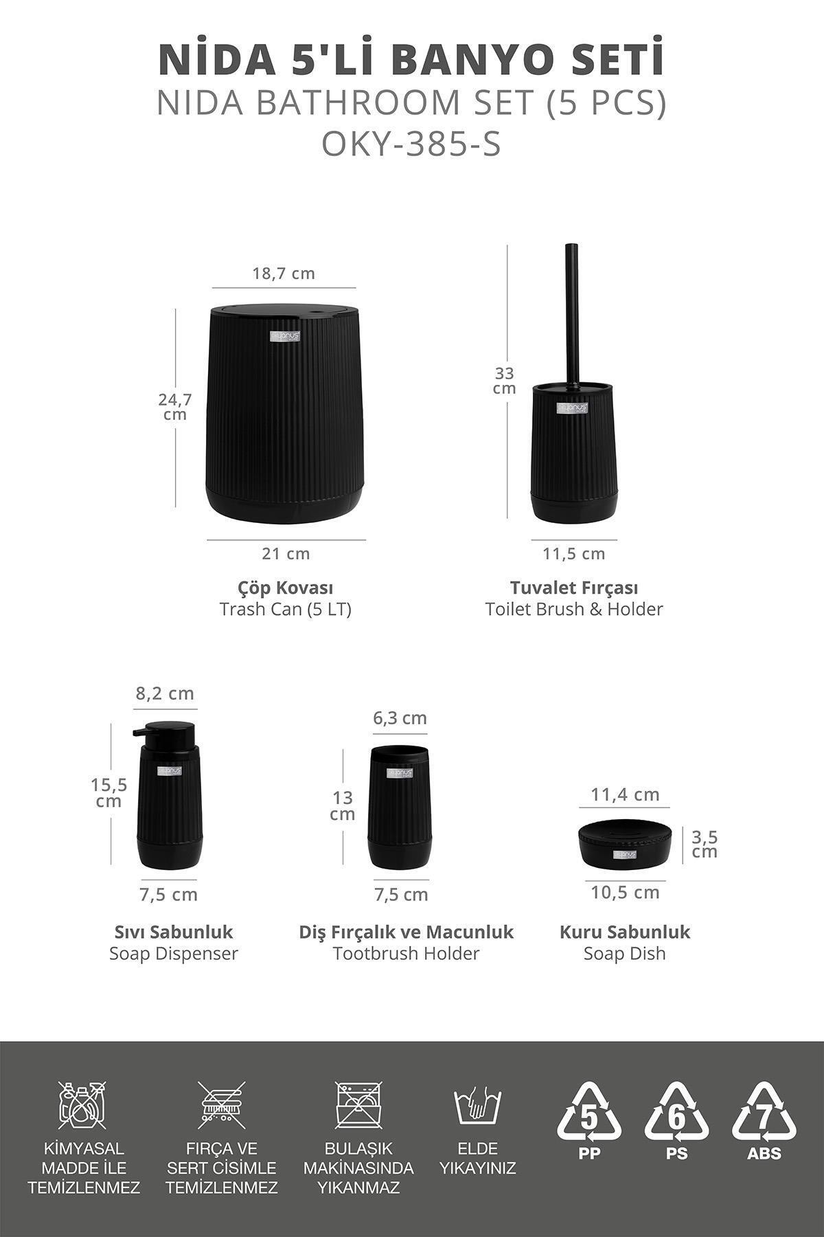 Nida Siyah 5'li Banyo Seti Nida Siyah 5'li Banyo Seti OKY-385 تک سایز