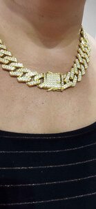 Taşlı Büyük Küba Zincir Kolye Gold Taşlı Büyük Küba Zincir Kolye Gold 123GOLDtyr 45 cm