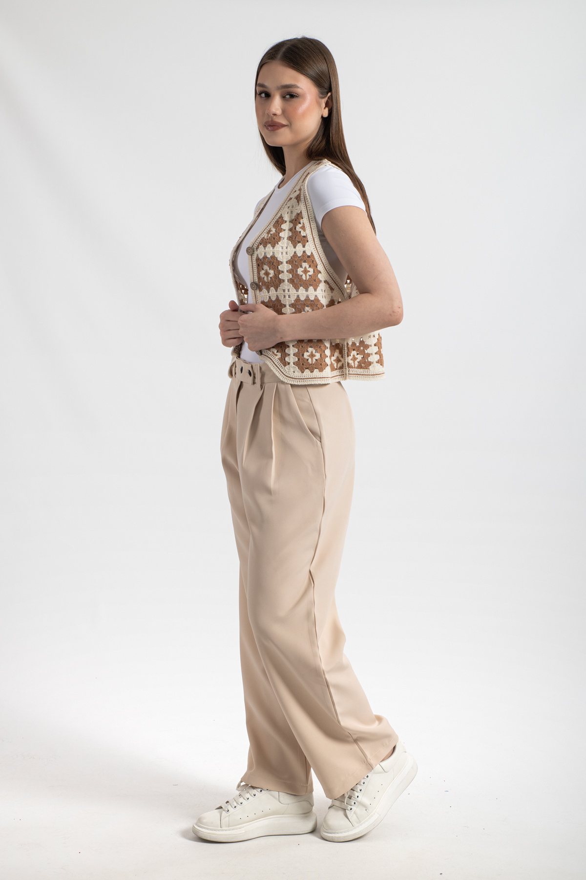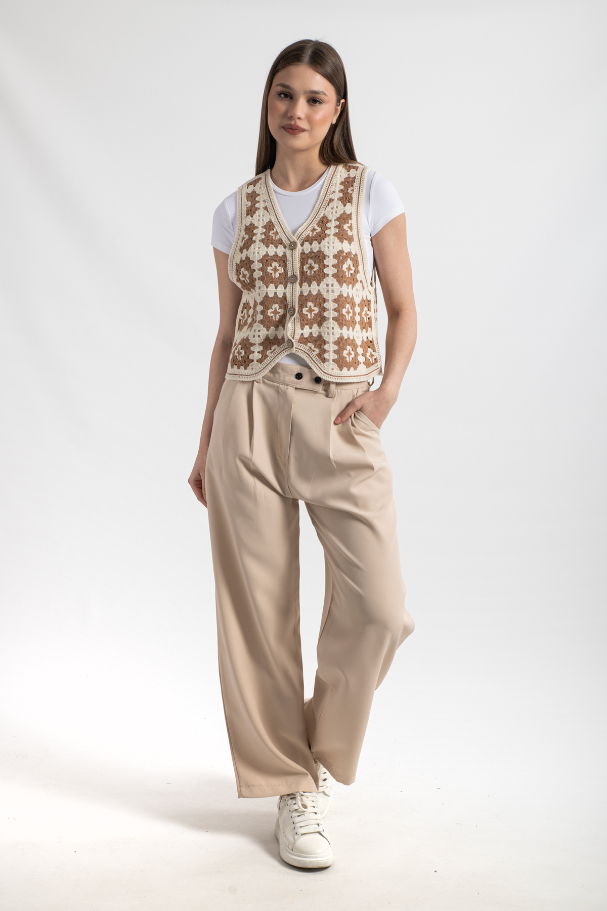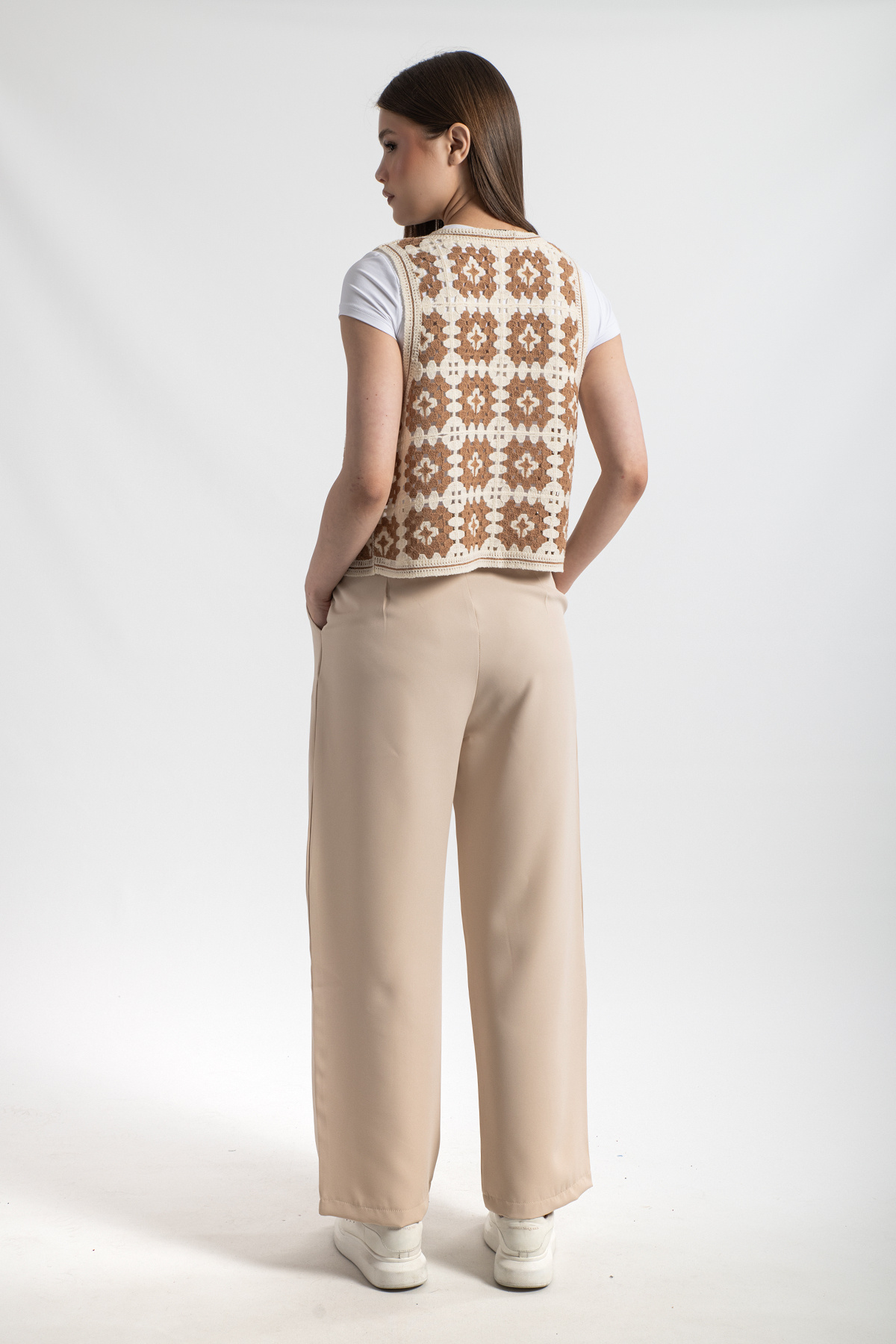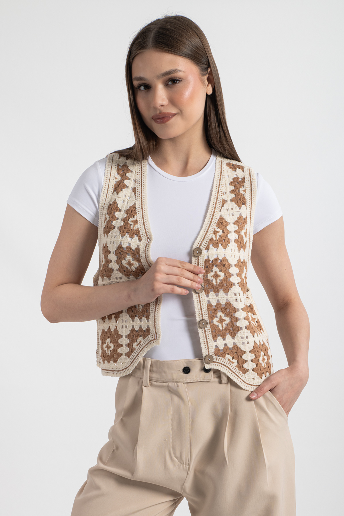 HatunAtila Desenli Süzine Örgü Triko Yelek Vizon HatunAtila Desenli Süzine Örgü Triko Yelek Vizon 0003 Standart