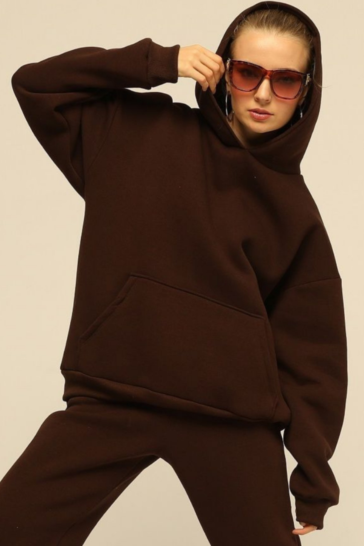 Kadın Baskısız Düz Basic Salaş Hoodie Sweatshirt Kadın Baskısız Düz Basic Salaş Hoodie Sweatshirt BBSWT060 XL