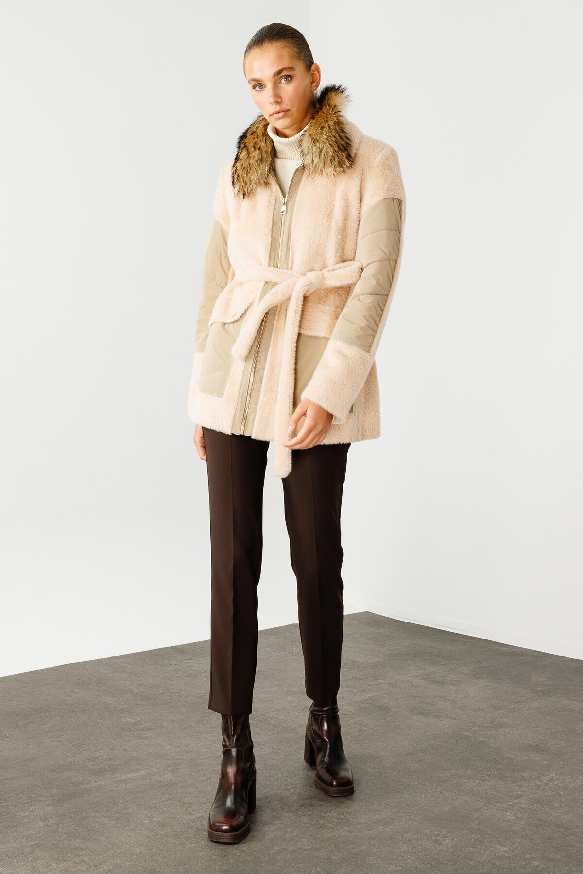Modailgi Yakası Kürklü Cep Kapaklı Peluş Kaban Camel Modailgi Yakası Kürklü Cep Kapaklı Peluş Kaban Camel ILG250KBN25143 46