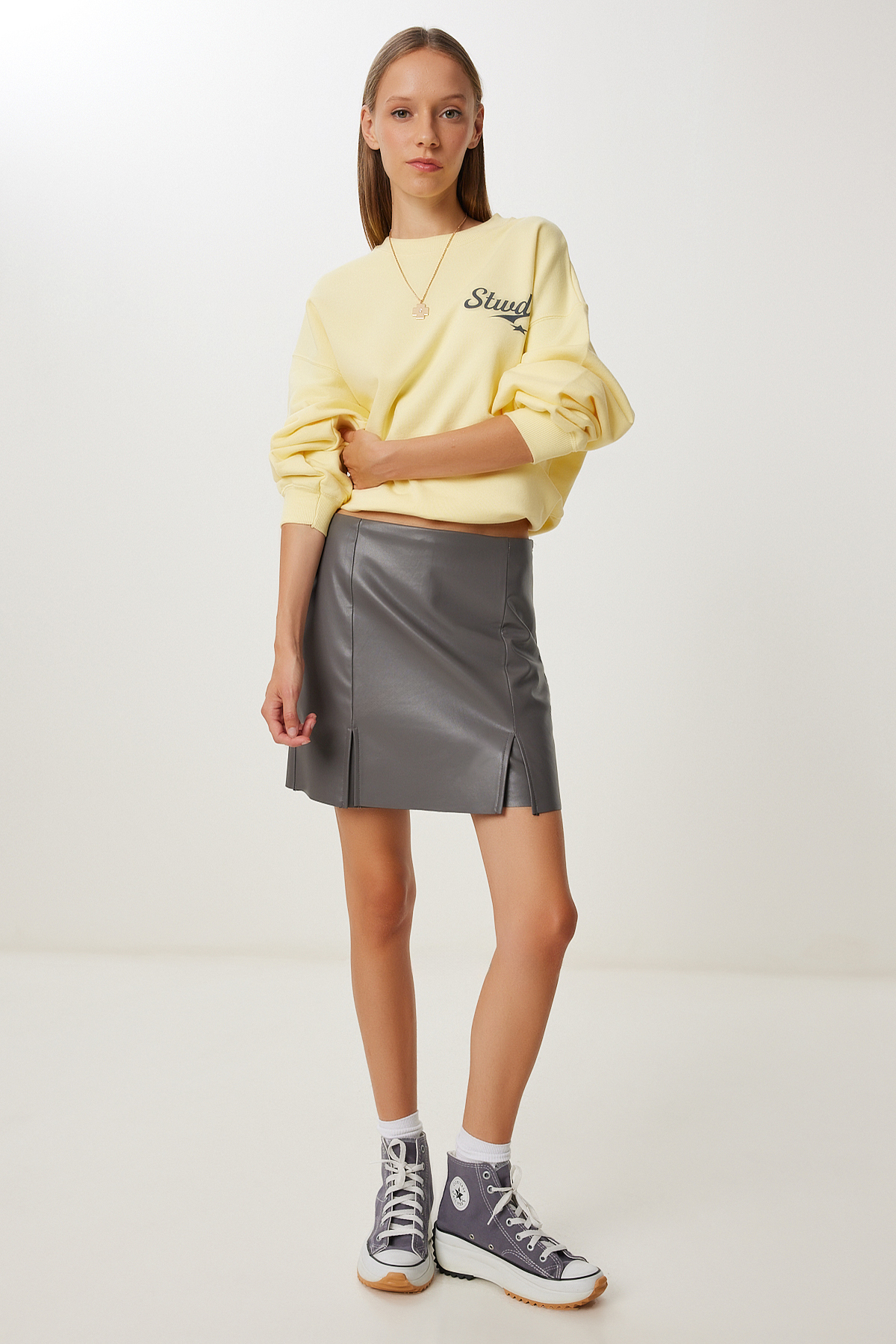 040887 Deri Mini Şort Etek Antrasit 040887 Deri Mini Şort Etek Antrasit 682886 L