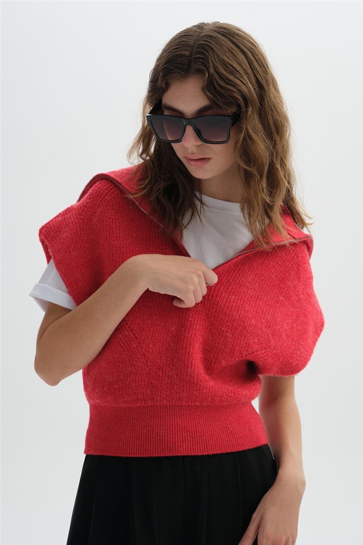 Kırmızı Yaka Detaylı Triko Süveter Kırmızı Yaka Detaylı Triko Süveter SW24K5226 L