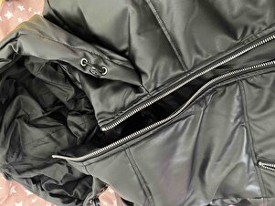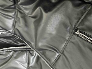 Kısa Şişme Mont Deri Görünümlü Dik Yaka Fermuarlı Cepli Rahat Kalıp Kısa Şişme Mont Deri Görünümlü Dik Yaka Fermuarlı Cepli Rahat Kalıp 5WAL20001IW 42