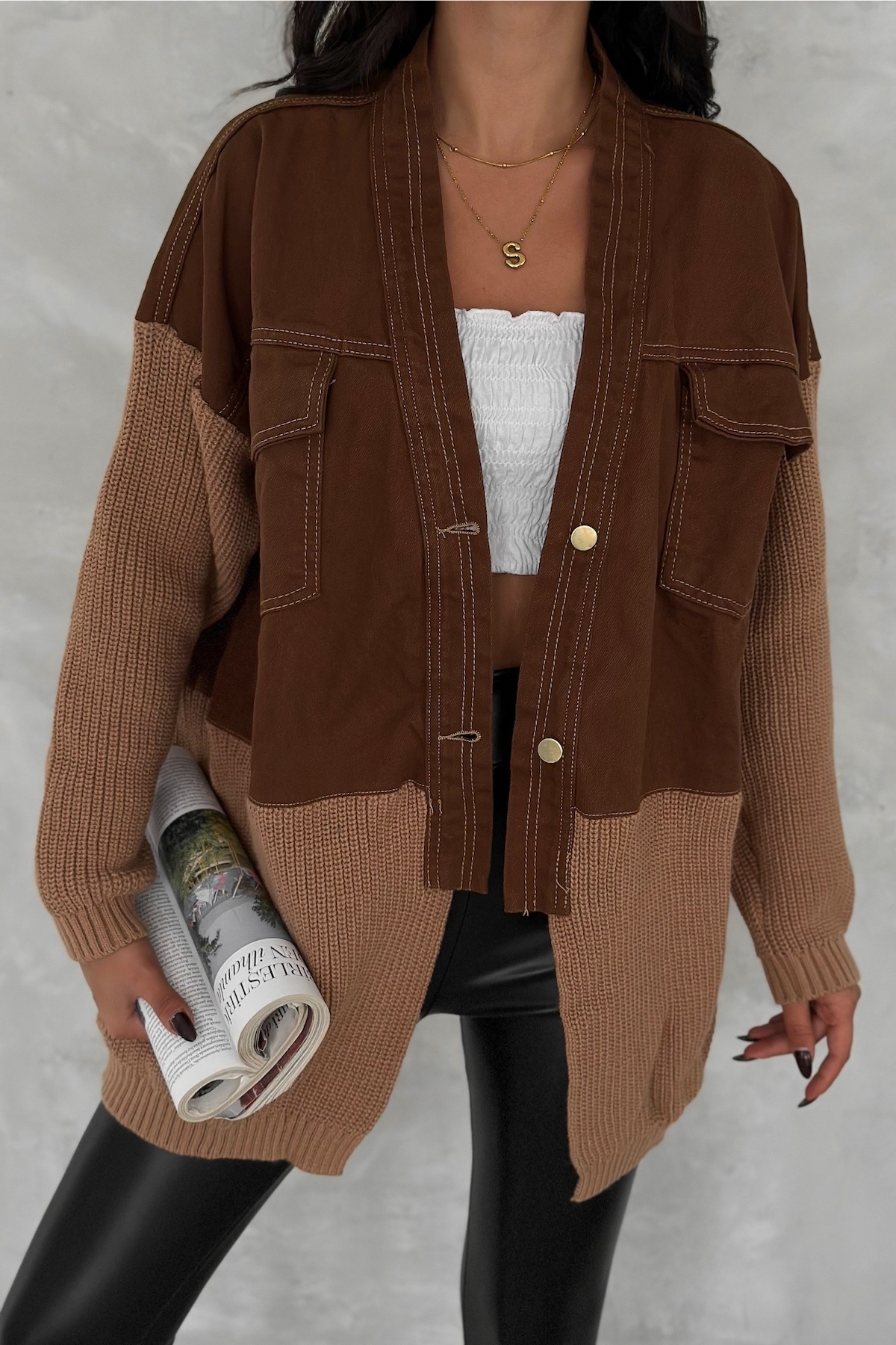 Kadın Kahverengi Standart Beden Triko Detaylı Tasarım Oversize Gabardin Ceket Kadın Kahverengi Standart Beden Triko Detaylı Tasarım Oversize Gabardin Ceket tvst99 Standart