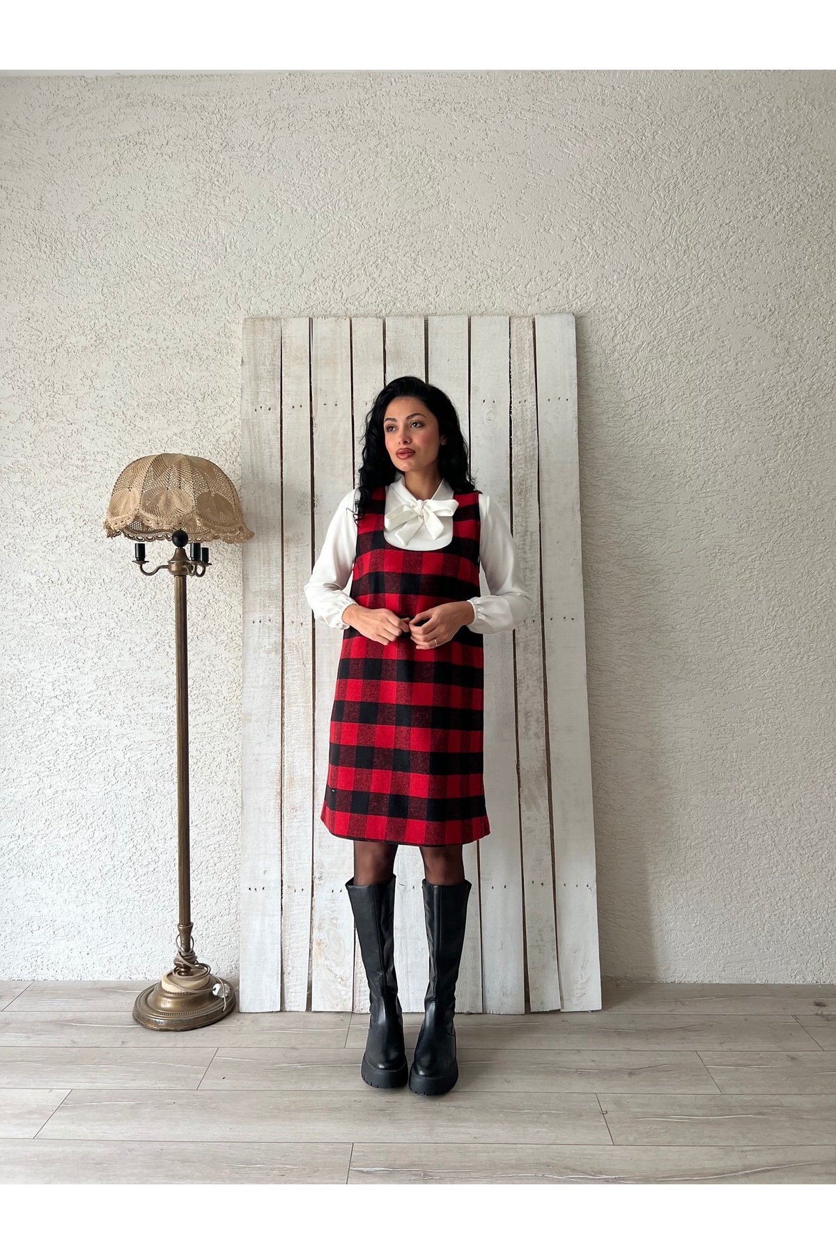 Kırmızı Dama Desen Kare Yaka Kısa Jile Elbise (KISA) Kırmızı Dama Desen Kare Yaka Kısa Jile Elbise (KISA) KCGM12583 48-50