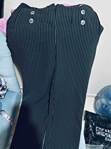 Yüksek Bel Çizgili Havuç Kesim Kumaş Pantolon Yüksek Bel Çizgili Havuç Kesim Kumaş Pantolon 5SAK40041UW 48