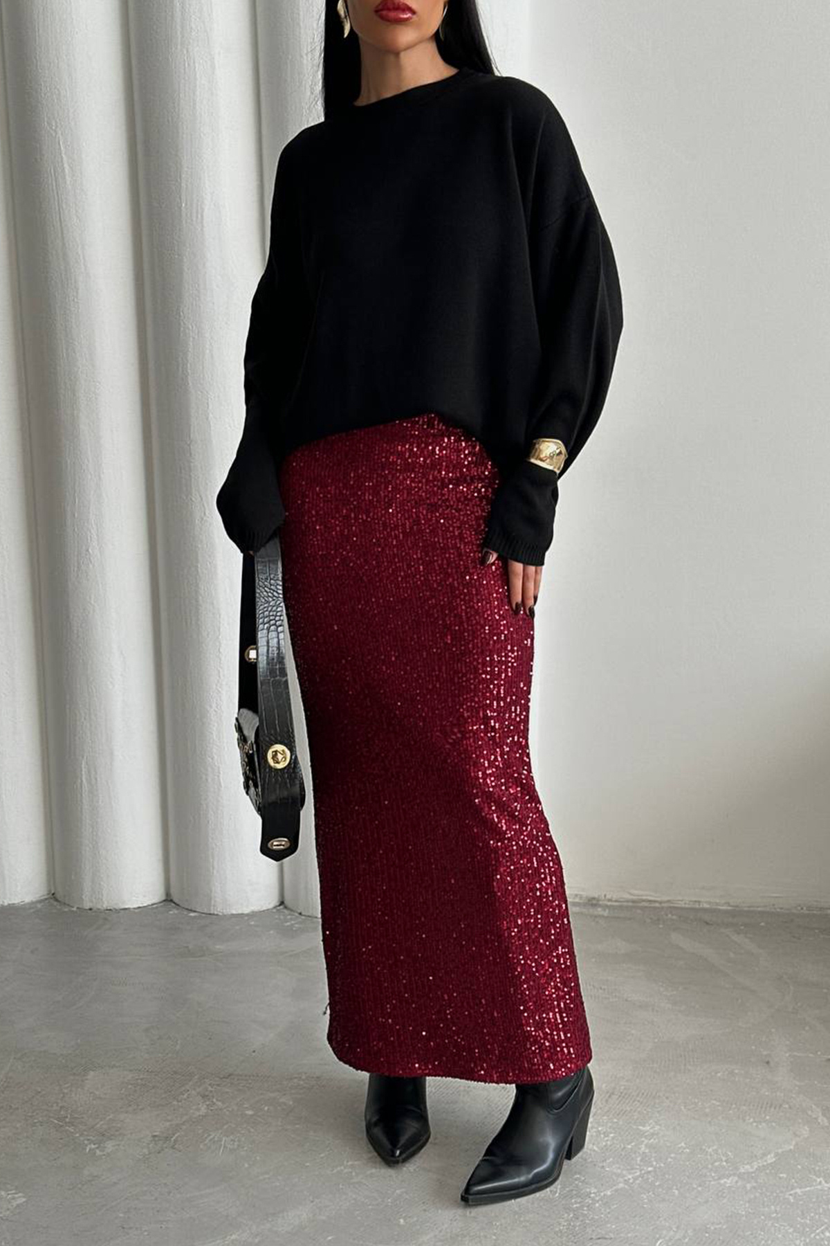 Bordo Payetli Uzun Etek Bordo Payetli Uzun Etek OC0000000517 L
