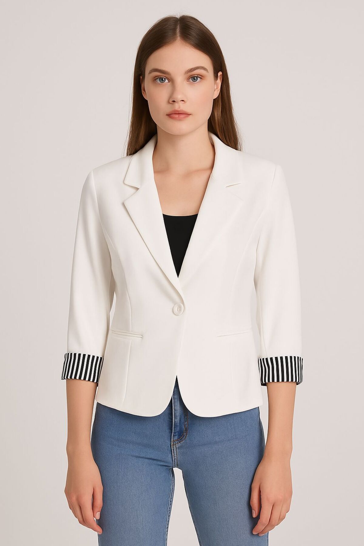 Kadın Beyaz Viskoz Karışımlı Çizgili Çift Düğmeli Blazer Ceket Kadın Beyaz Viskoz Karışımlı Çizgili Çift Düğmeli Blazer Ceket 324P2PIKLW020 42