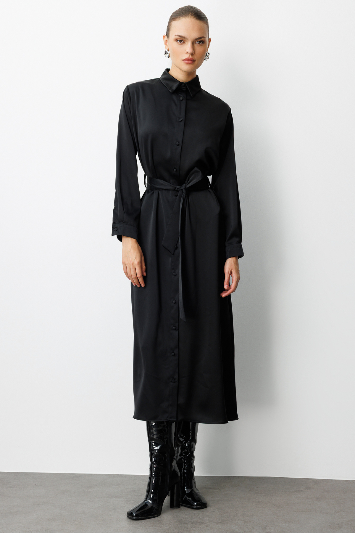 Kolu Fırfırlı Elips Mavi Elbise Kolu Fırfırlı Elips Mavi Elbise M1MZ1030120210220 XL