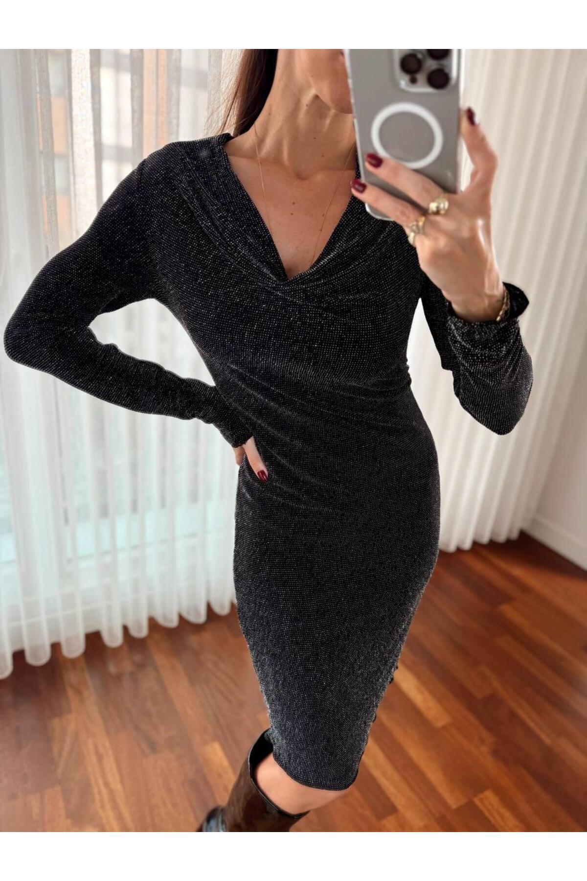 Kadın Degaje Yaka Vatkalı Simli Elbise Kadın Degaje Yaka Vatkalı Simli Elbise 25KEAR235 L