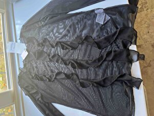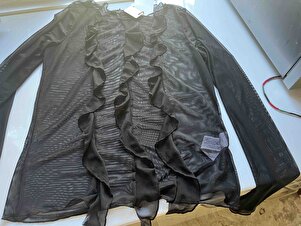 Alıyah Kadın Tül Kumaşlı Fırfırlı Transparan Vücüdu Saran Siyah Bluz Alıyah Kadın Tül Kumaşlı Fırfırlı Transparan Vücüdu Saran Siyah Bluz ALIYAH01082024 XL