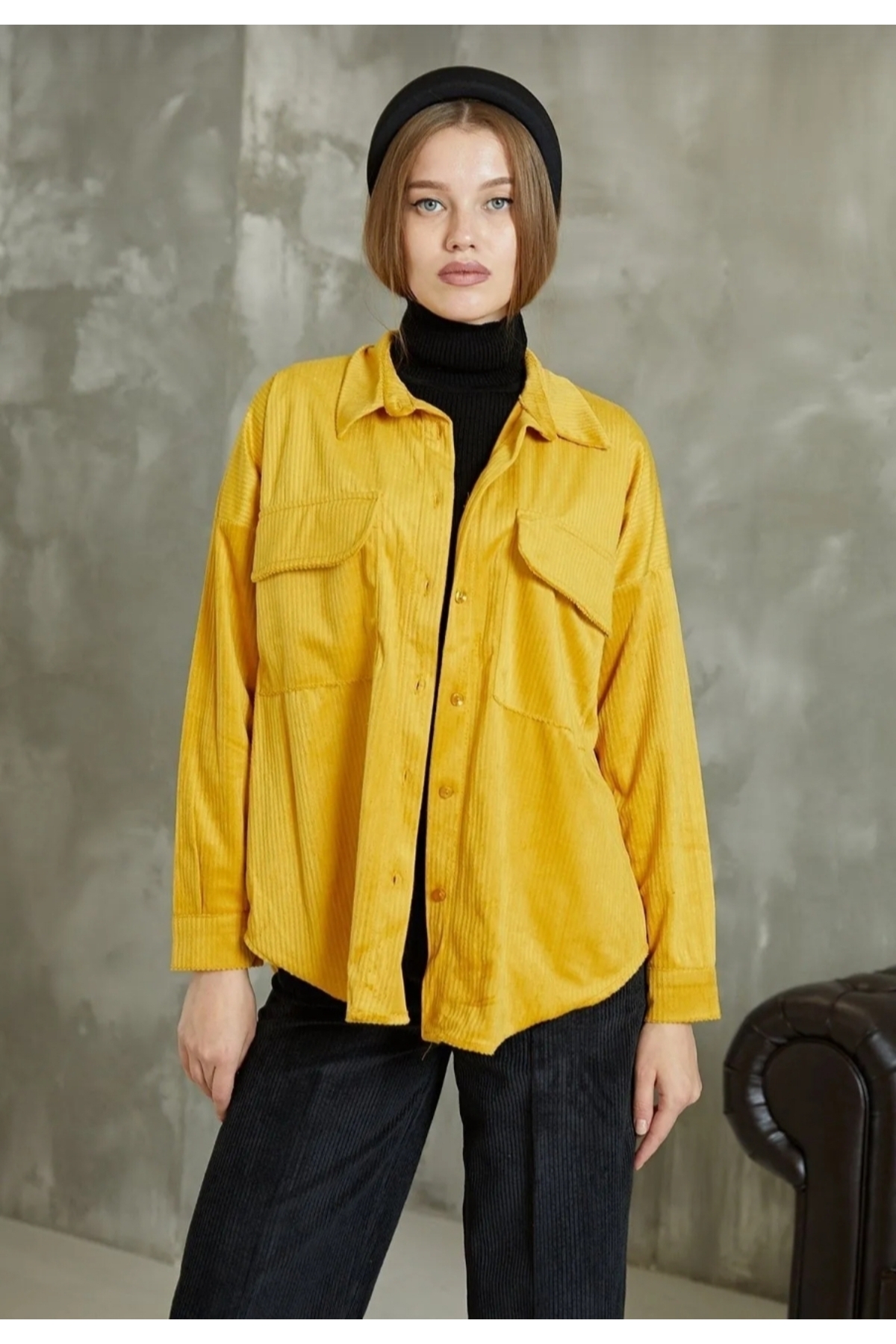 Kadın Kiremit Ince Fitilli Kadife Cepli Oversize Gömlek Kadın Kiremit Ince Fitilli Kadife Cepli Oversize Gömlek msl-gml-19000706 XL