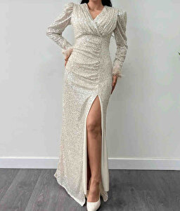 Pul Payet Kumaş Otriş Detaylı Abiye Elbise - GOLD Pul Payet Kumaş Otriş Detaylı Abiye Elbise - GOLD GYM-0211 50