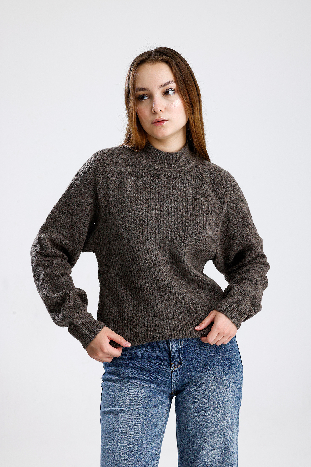 Bisiklet Yaka Geçişli Kadın Kazak Bisiklet Yaka Geçişli Kadın Kazak FG4718 Standart