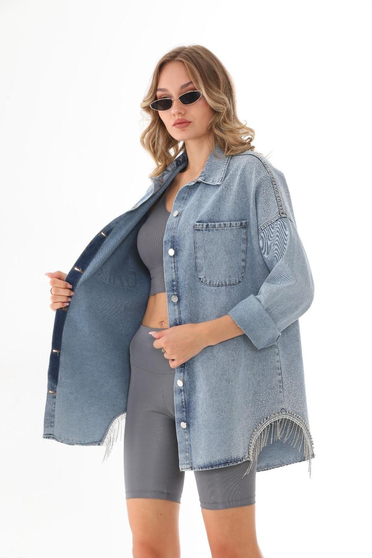 KADIN TAŞ DETAYLI KAR YIKAMALI DENİM KOT CEKET KADIN TAŞ DETAYLI KAR YIKAMALI DENİM KOT CEKET 2222 46