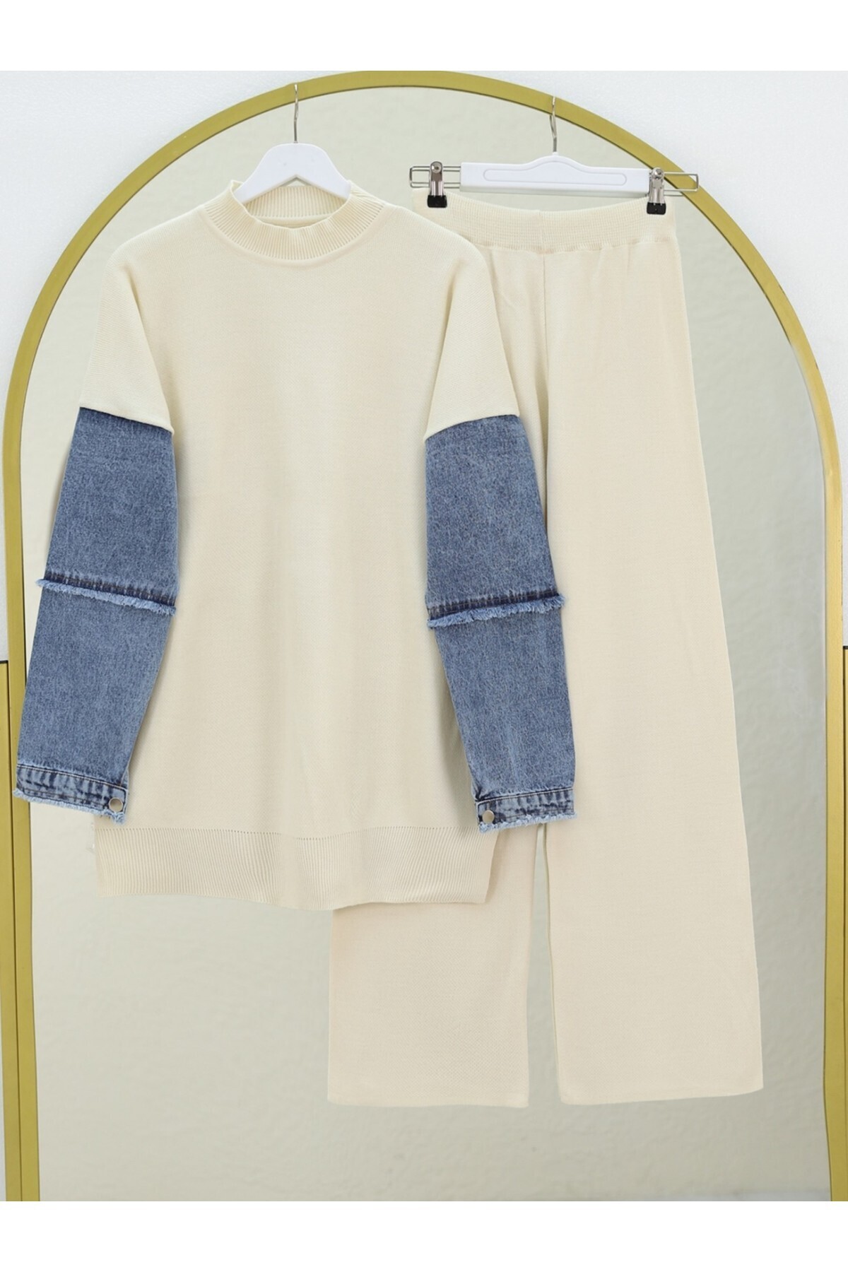 Kot Gömlek Yakalı Triko Takım -vizon Kot Gömlek Yakalı Triko Takım -vizon TY247-7004 Standart