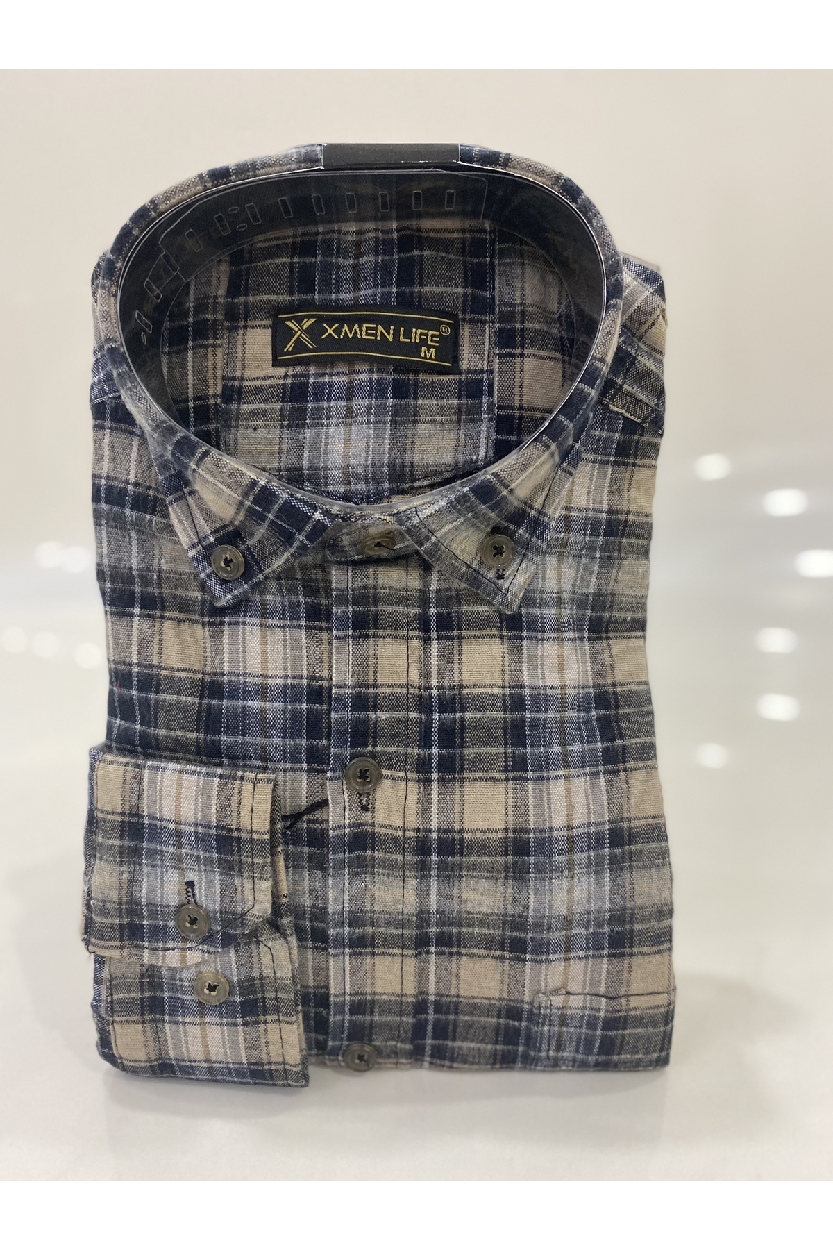 Rahat Kesim Çizgili Kareli Kışlık Erkek Baba Gömlek Rahat Kesim Çizgili Kareli Kışlık Erkek Baba Gömlek TYBG98100413998 2XL