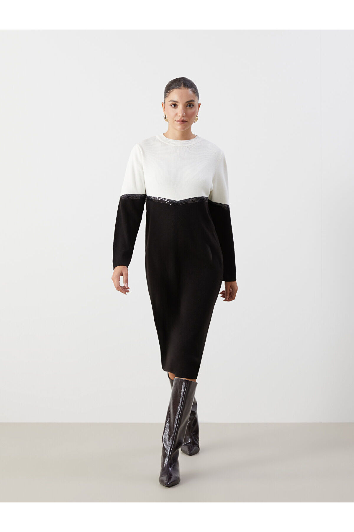 LCWAIKIKI Classic Siyah Bisiklet Yaka Renk Bloklu Kadın Triko Elbise LCWAIKIKI Classic Siyah Bisiklet Yaka Renk Bloklu Kadın Triko Elbise W4I791Z8 3XL