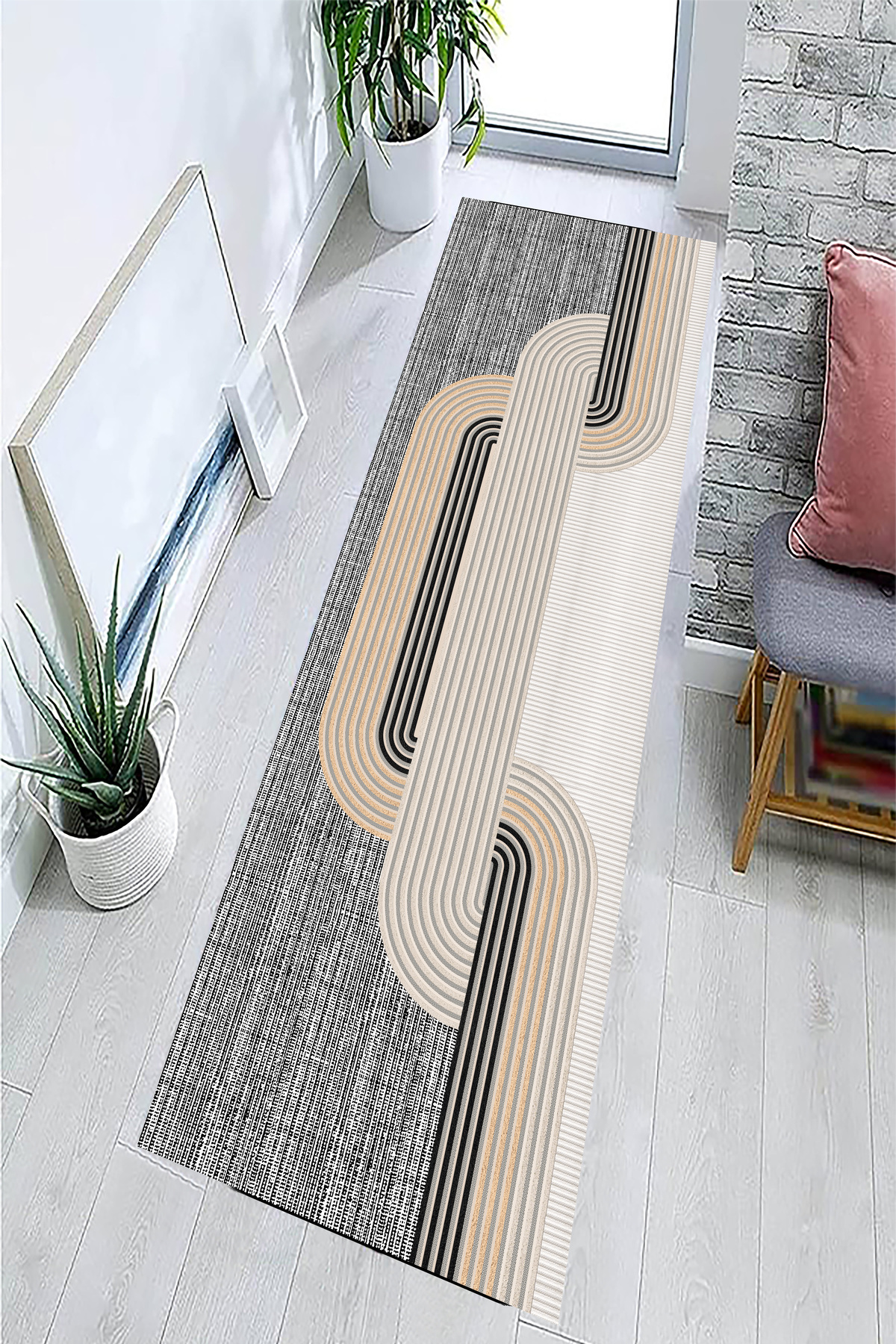 Dekoratif Modern Vintage Retro Tasarım Kaydırmaz Taban Bej Renkli Salon Yolluk Oturma Odası Halı Dekoratif Modern Vintage Retro Tasarım Kaydırmaz Taban Bej Renkli Salon Yolluk Oturma Odası Halı ART-285 100 x 300
