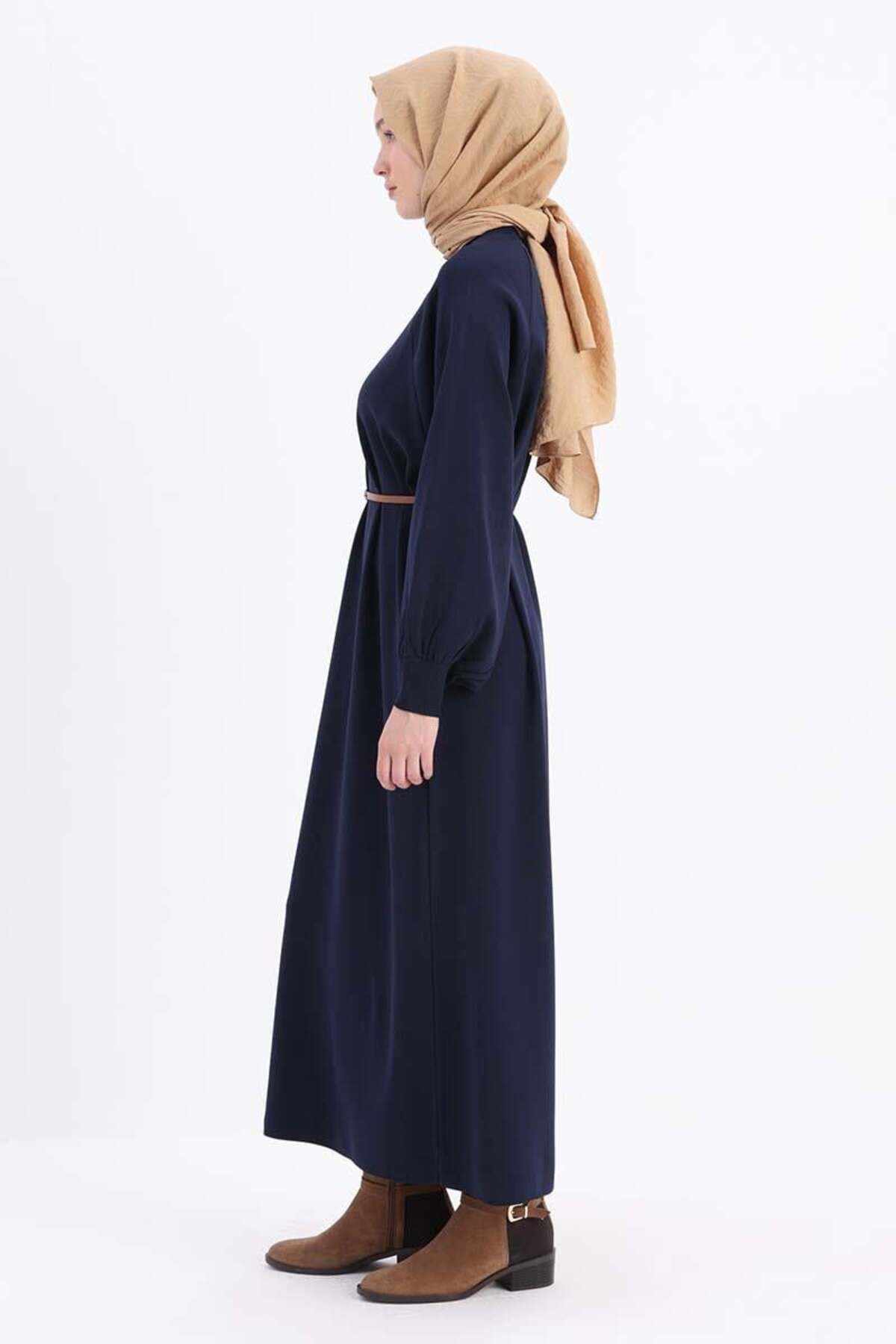 Lacivert-Kemerli İnce Triko Elbise Lacivert-Kemerli İnce Triko Elbise 24TW66001AL0 M