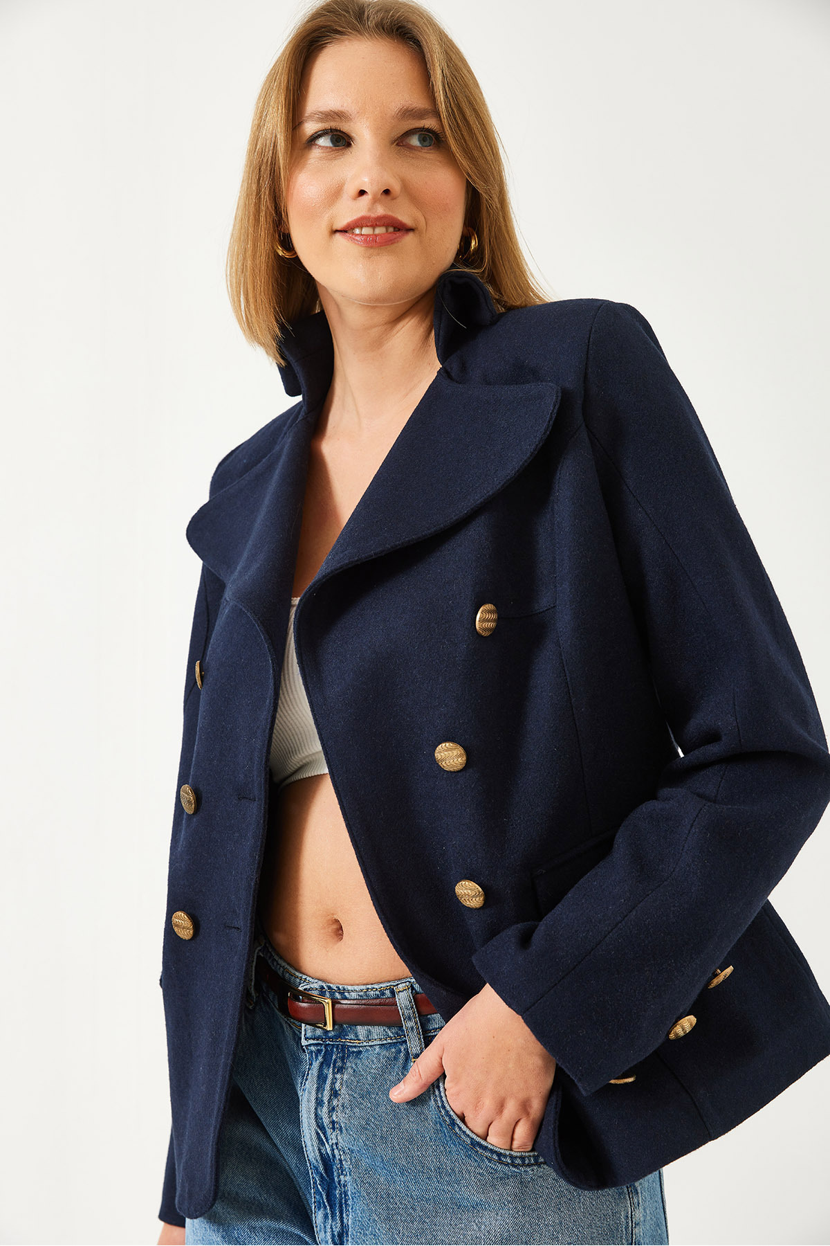 Kadın Düğmeli Astarlı Kaşe Ceket MBMS054 60501054 Kadın Düğmeli Astarlı Kaşe Ceket MBMS054 60501054 L