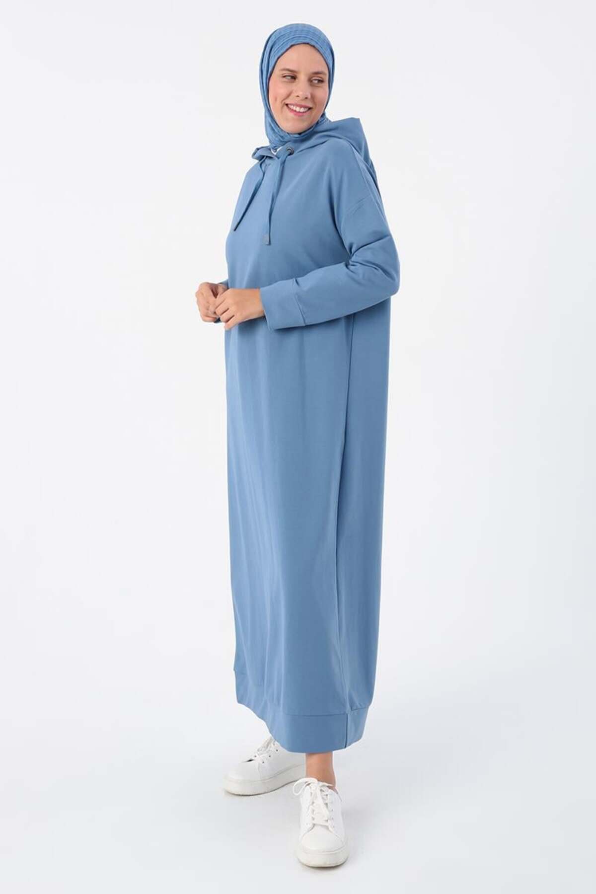 Mavi-Kapüşonlu Örme Elbise Mavi-Kapüşonlu Örme Elbise 21OB60008AL0 44
