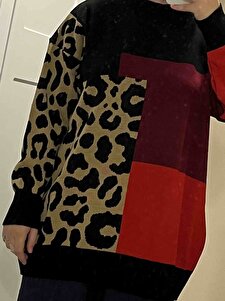 Leopar Blok Desenli Triko Tunik Leopar Blok Desenli Triko Tunik 24F1XD097 Standart