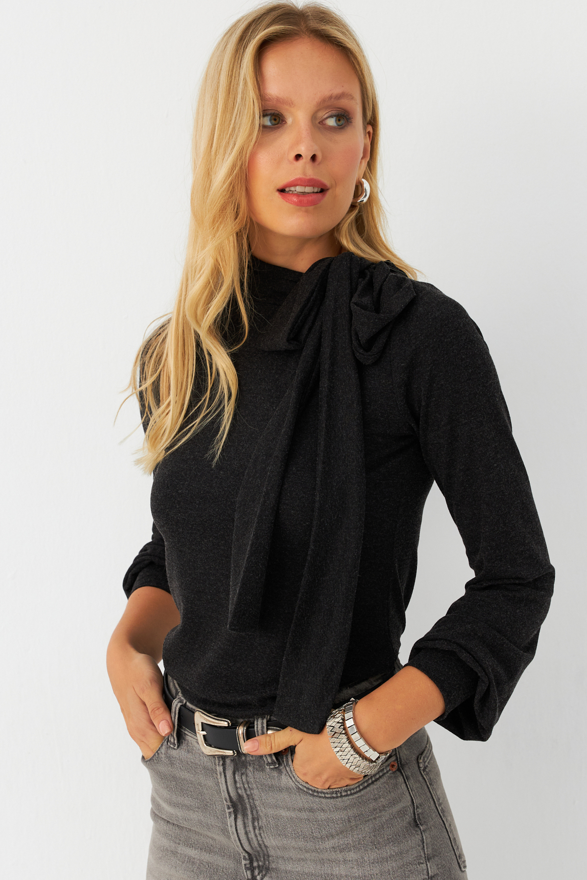 Kadın Siyah Şerit Detaylı Kaşkorse Balıkçı Bluz TF32 Kadın Siyah Şerit Detaylı Kaşkorse Balıkçı Bluz TF32 L