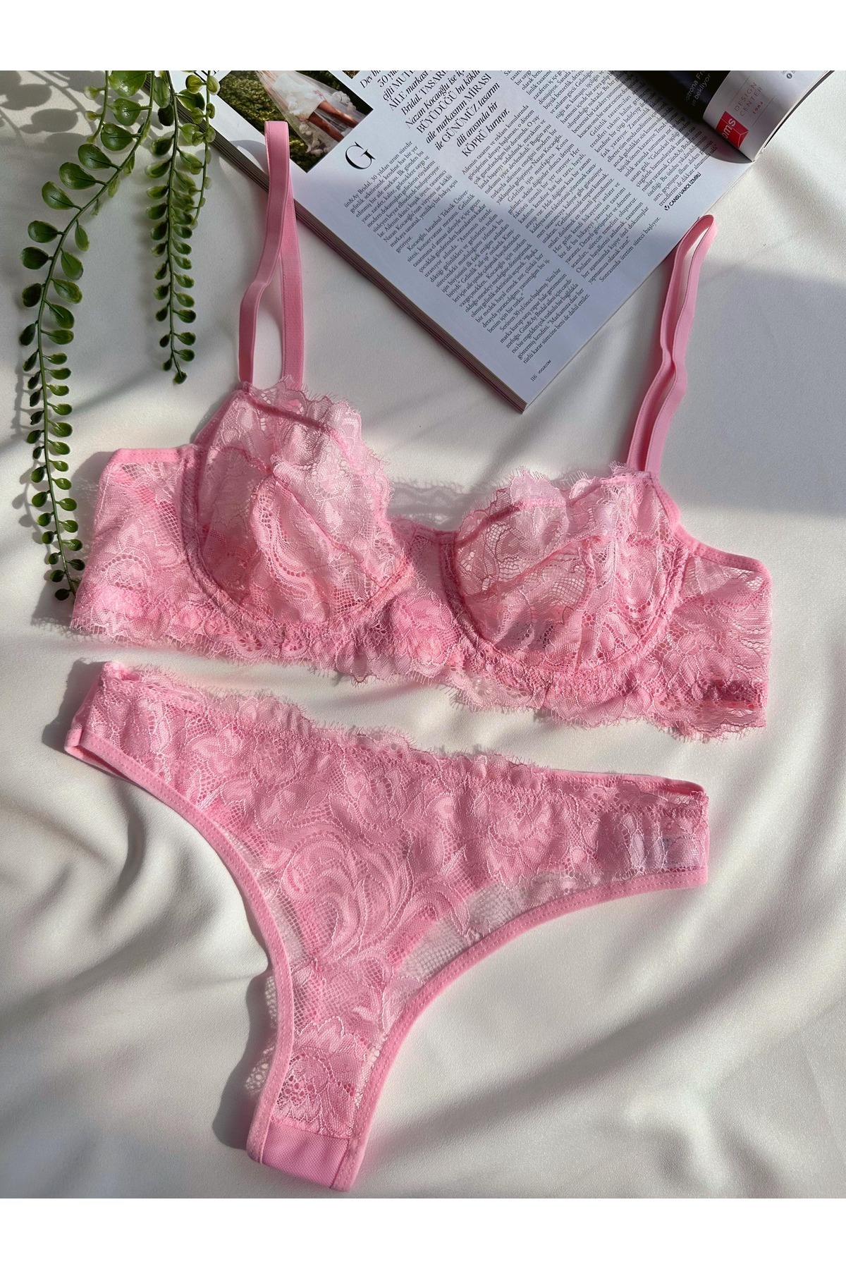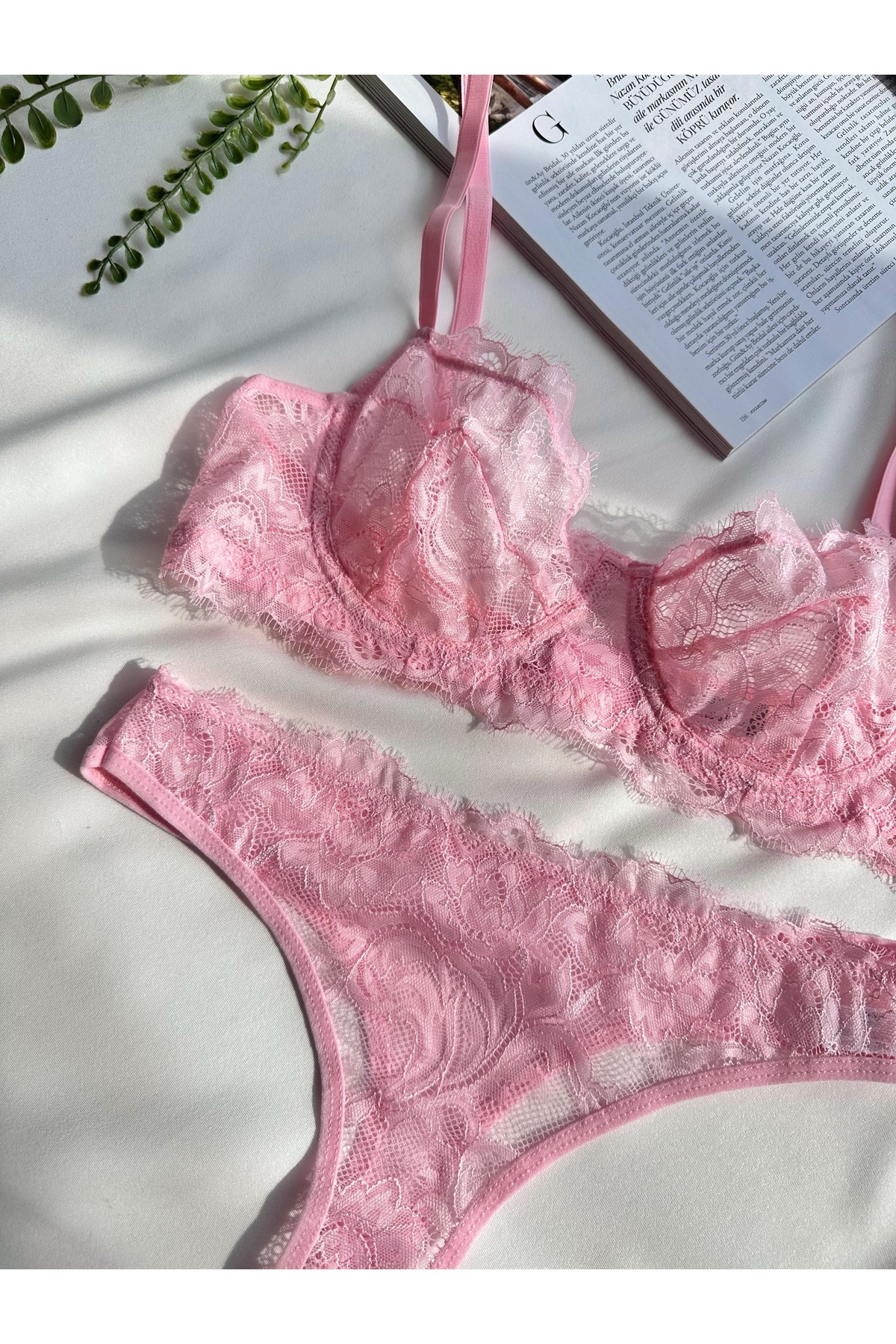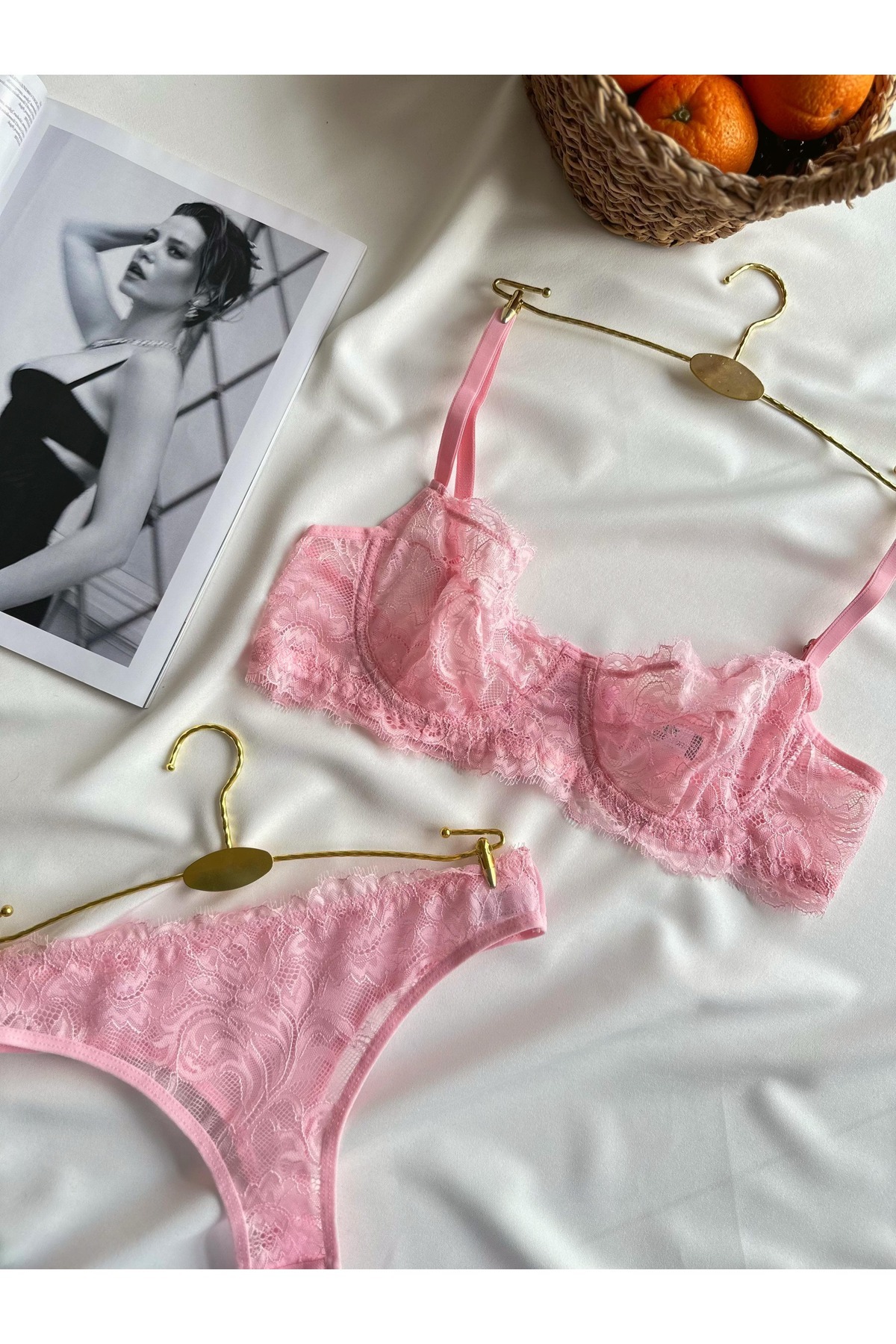 Anna Pembe Dantel Balenli Kapsız Külotlu Sütyen Takım Anna Pembe Dantel Balenli Kapsız Külotlu Sütyen Takım Anna-1 90B