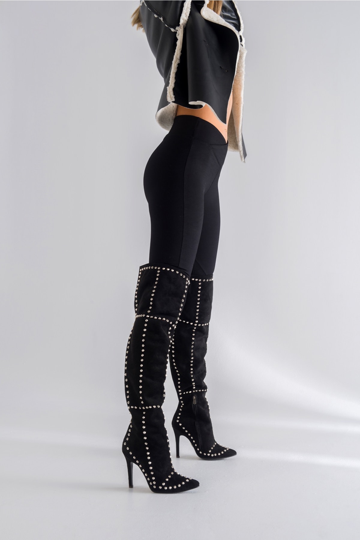 Calva Siyah Süet Kadın Taşlı Diz Üstü Topuklu Çizme Calva Siyah Süet Kadın Taşlı Diz Üstü Topuklu Çizme FS936 40